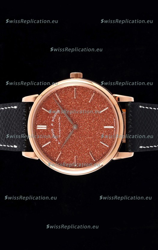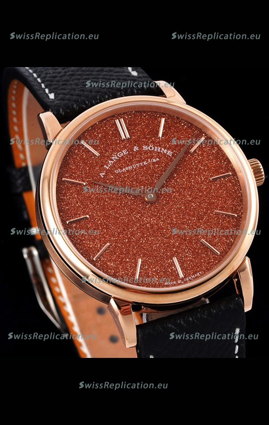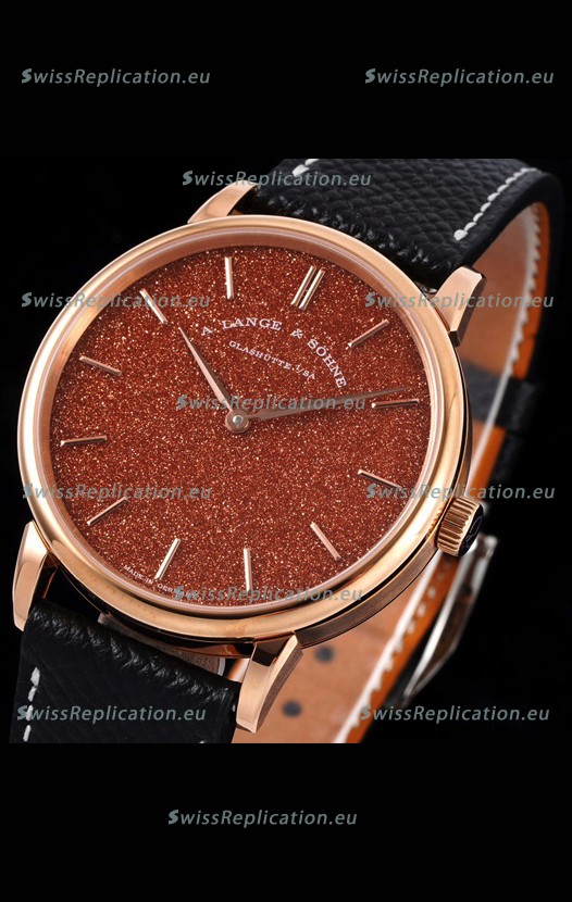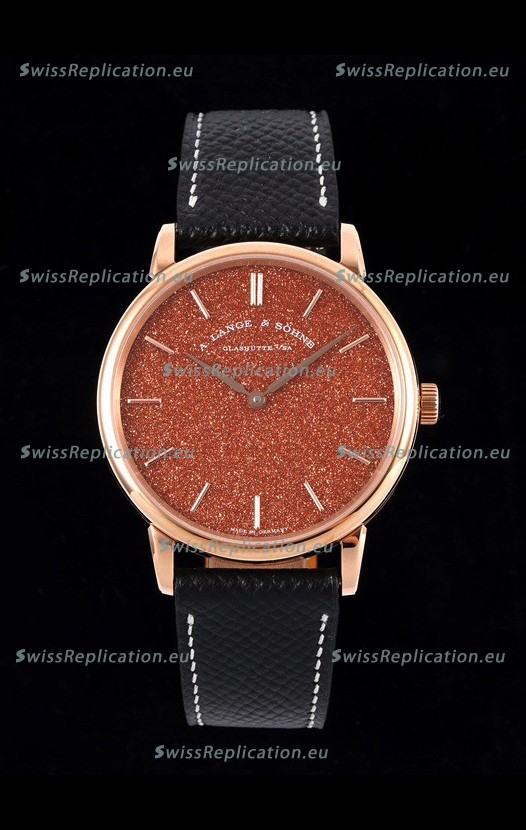 | Description | A.Lange & Sohne Saxonia Thin Swiss Replica Watch Rose Gold Case Starry Dial |