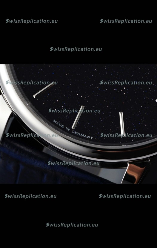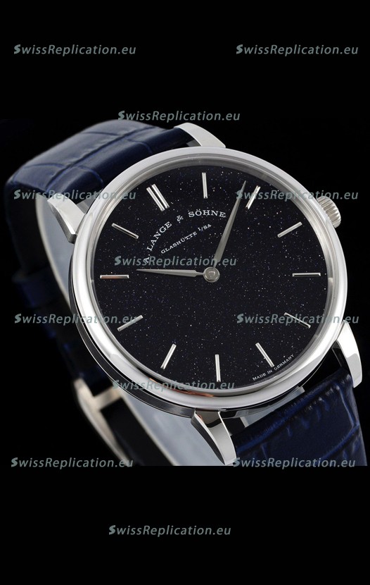 | Description | A.Lange & Sohne Saxonia Thin Swiss Replica Watch Steel Case Blue Dial |