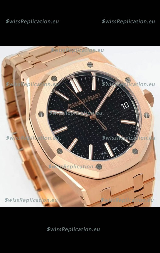 | Description | Audemars Piguet Royal Oak 15510OR 41MM Rose Gold Black Dial Super Clone Replica Watch |