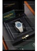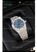 Blue Dial with Date Window at 3 O Clock and Frosted Steel Bezel exactly as per the Originals