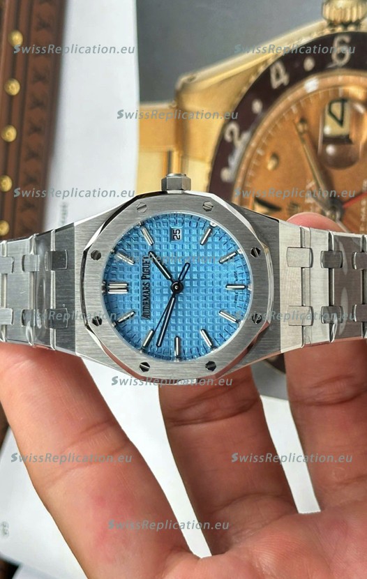 | Description | Audemars Piguet Super Clone Royal Oak 77450 34MM 904L Steel Ice Blue Dial Watch |