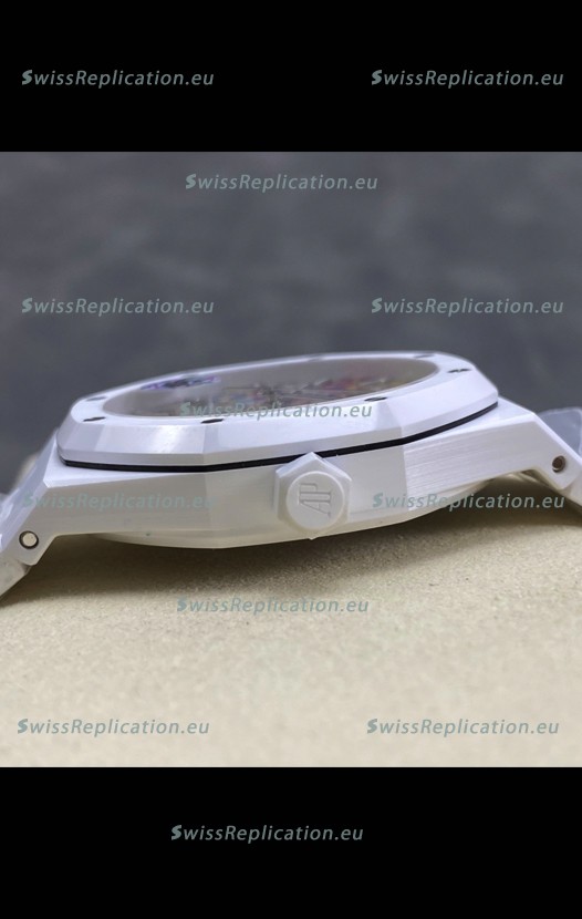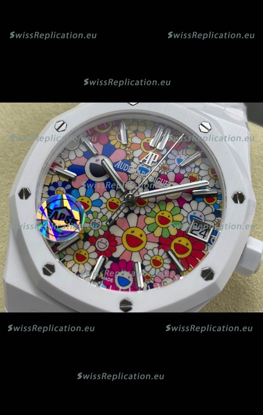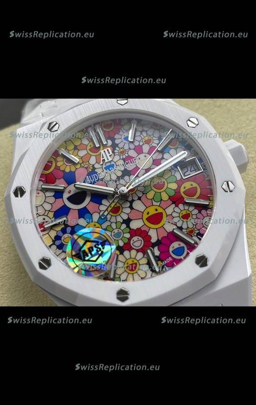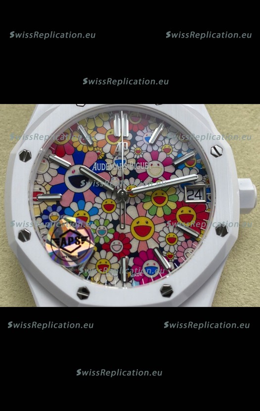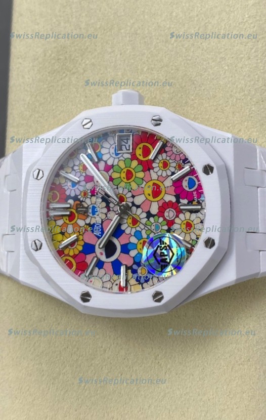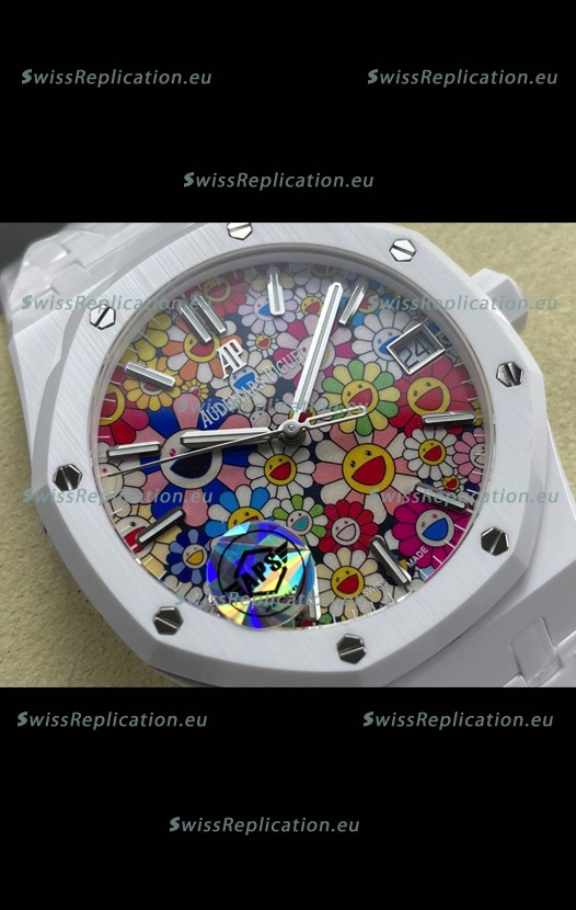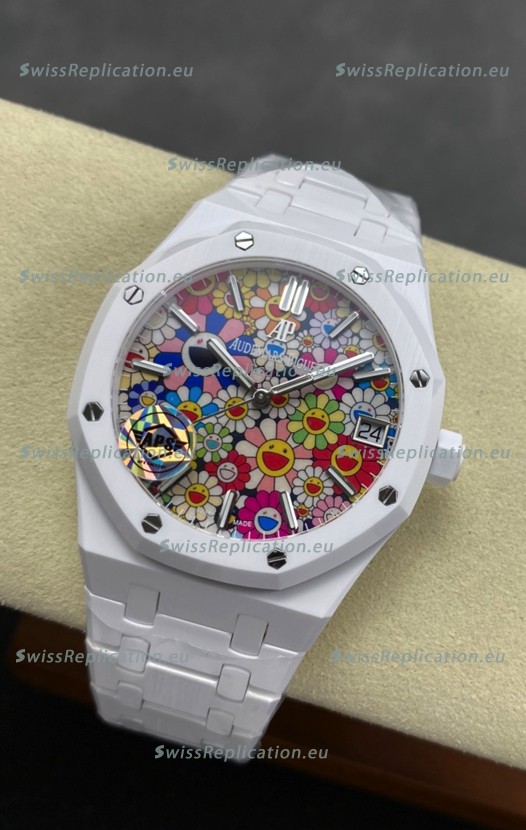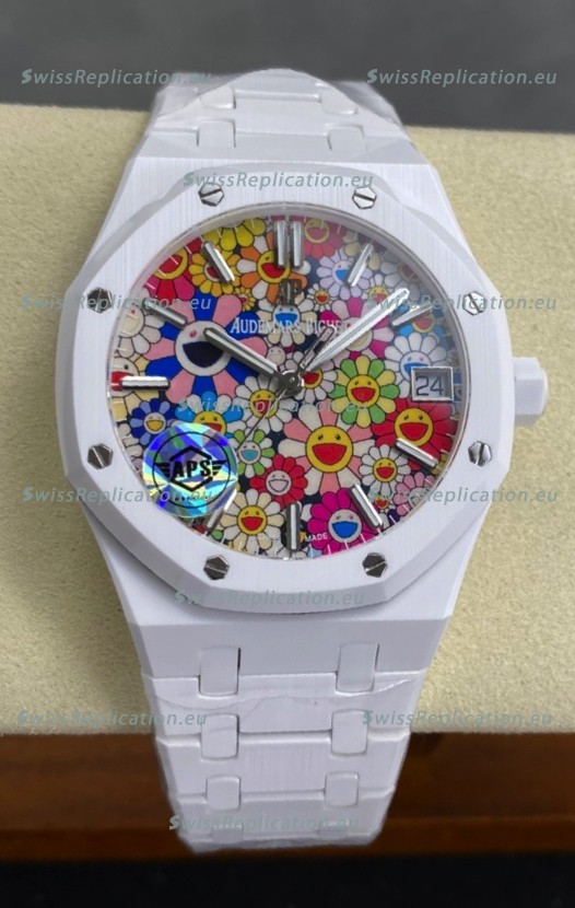 | Description | Audemars Piguet Super Clone Royal Oak White Ceramic Watch in Sun-Flower Dial |
