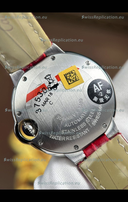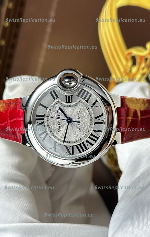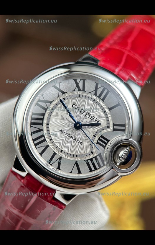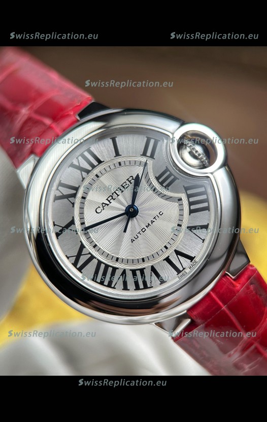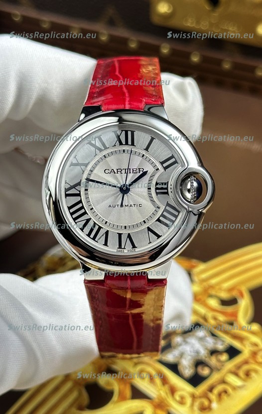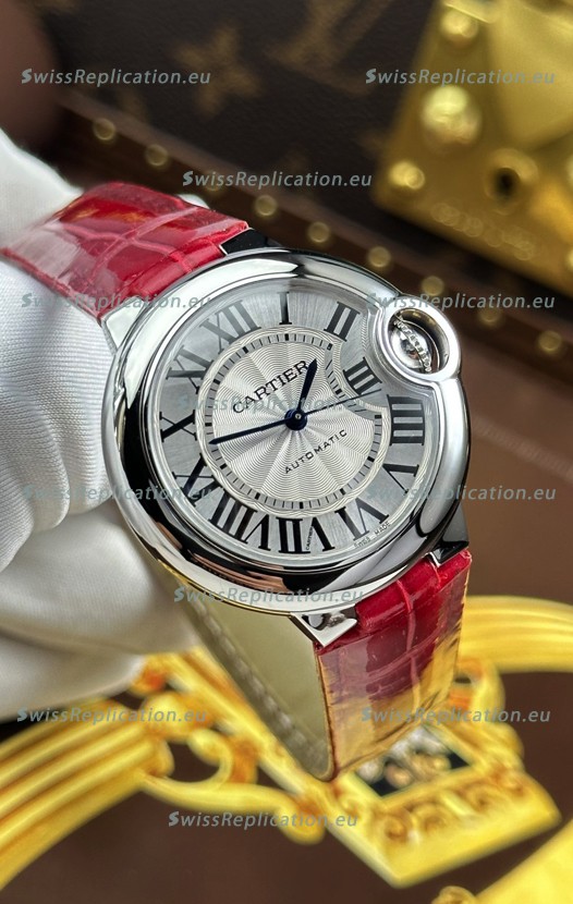 | Description | Ballon De Cartier Swiss Automatic 1:1 Mirror Quality 33MM in Burgundy Strap |