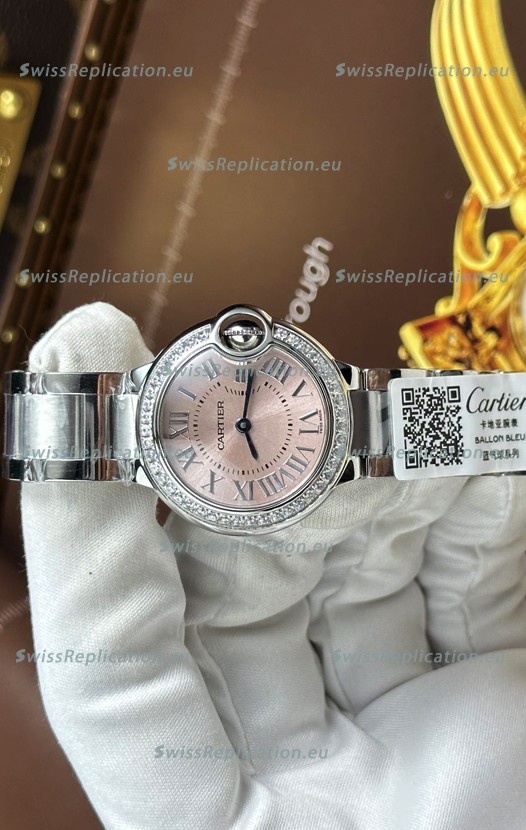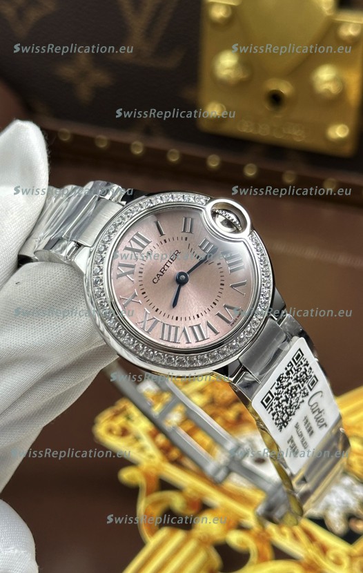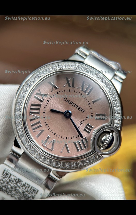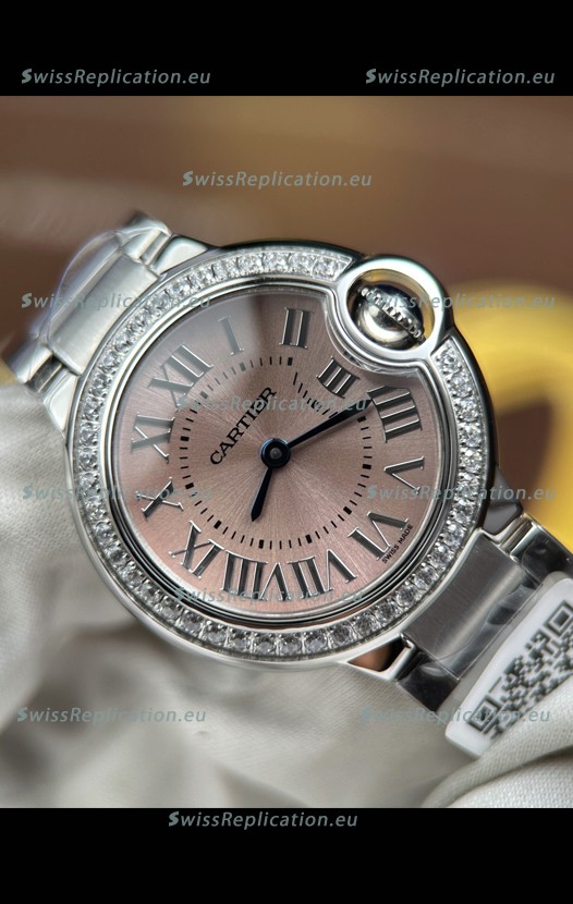 | Description | Ballon De Cartier Swiss Quartz 1:1 Mirror Quality 33MM in Steel Pink Dial |