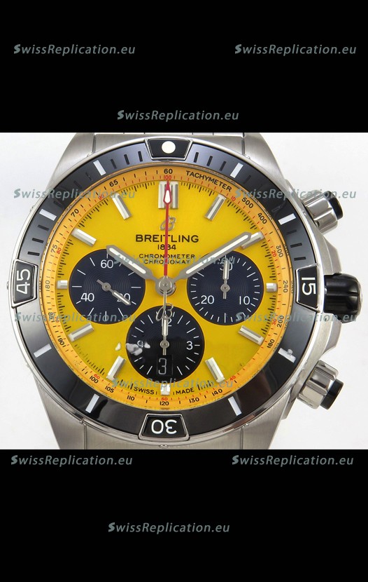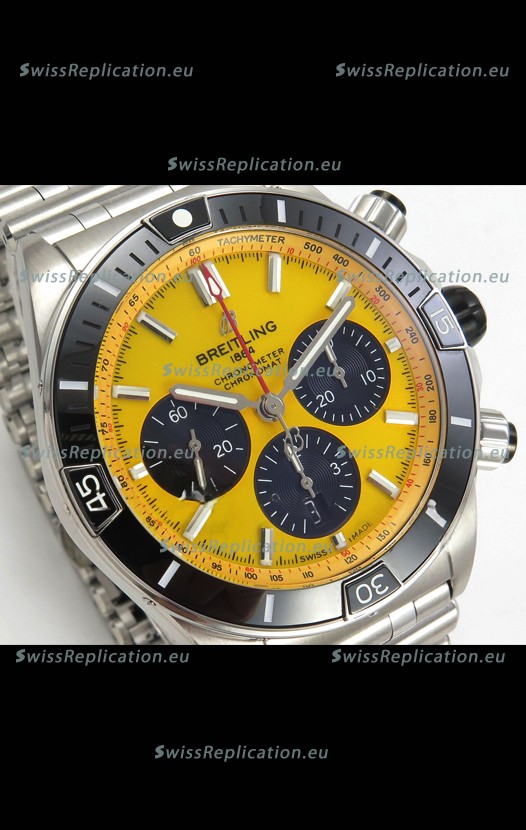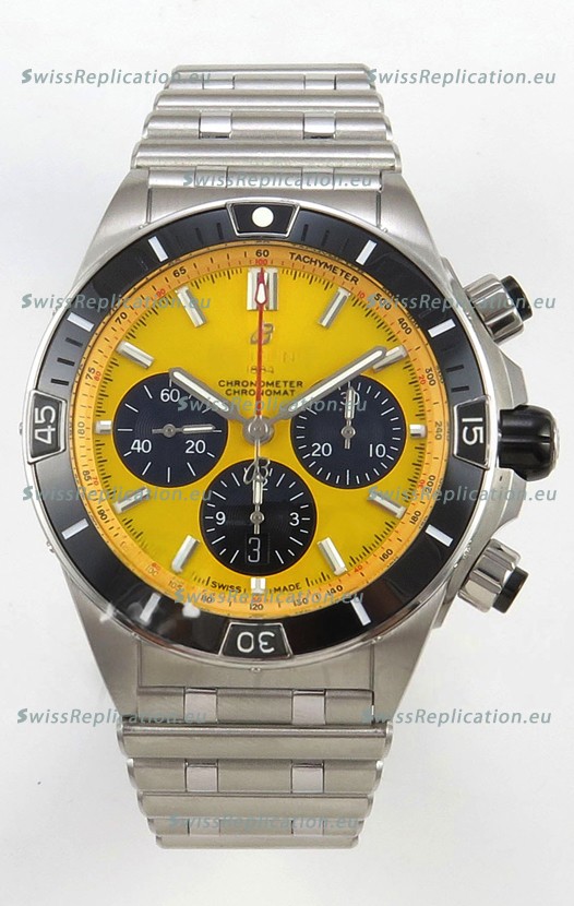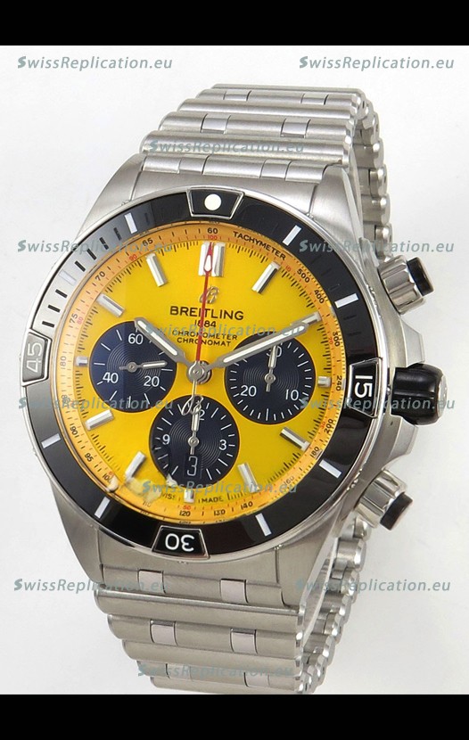 | Description | Breitling Chronomat Super Clone B01 42 Edition Swiss 904L Steel Watch Yellow Dial |