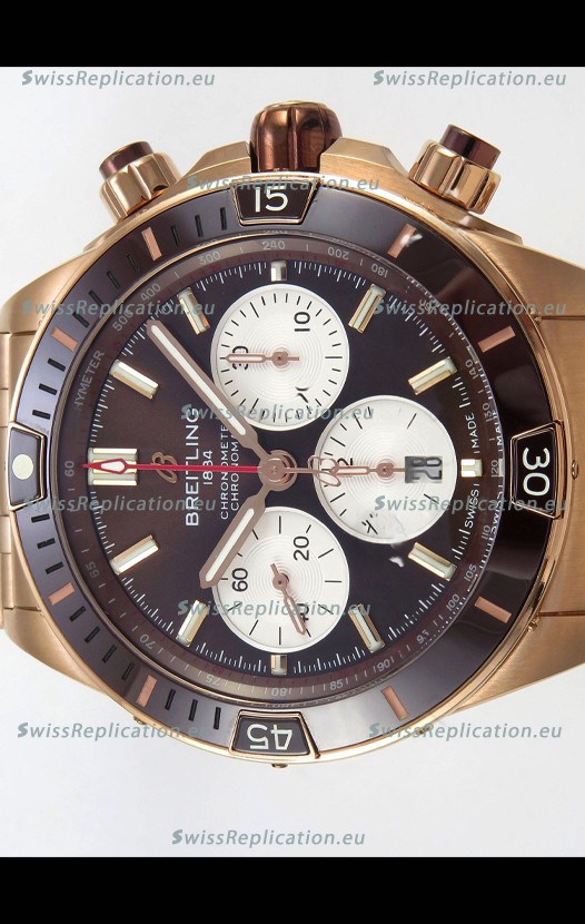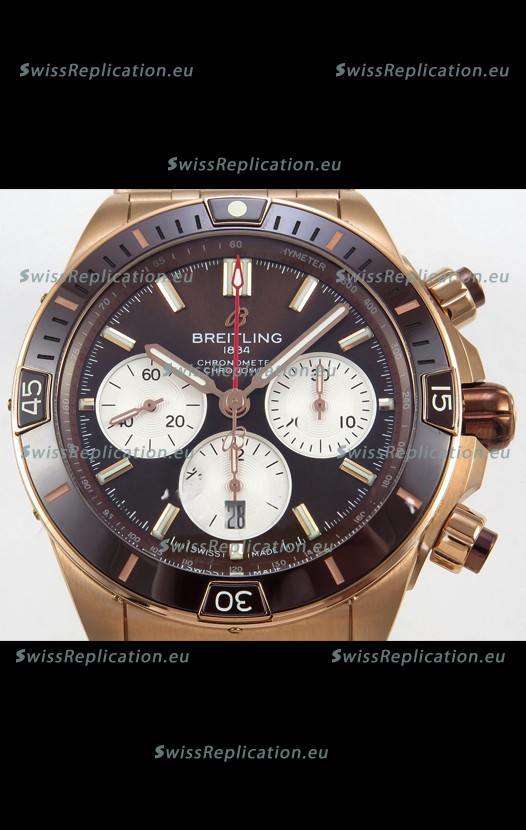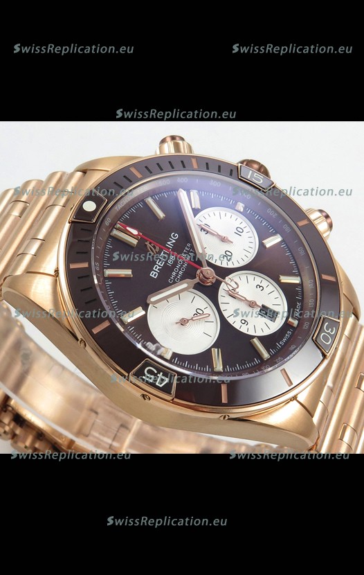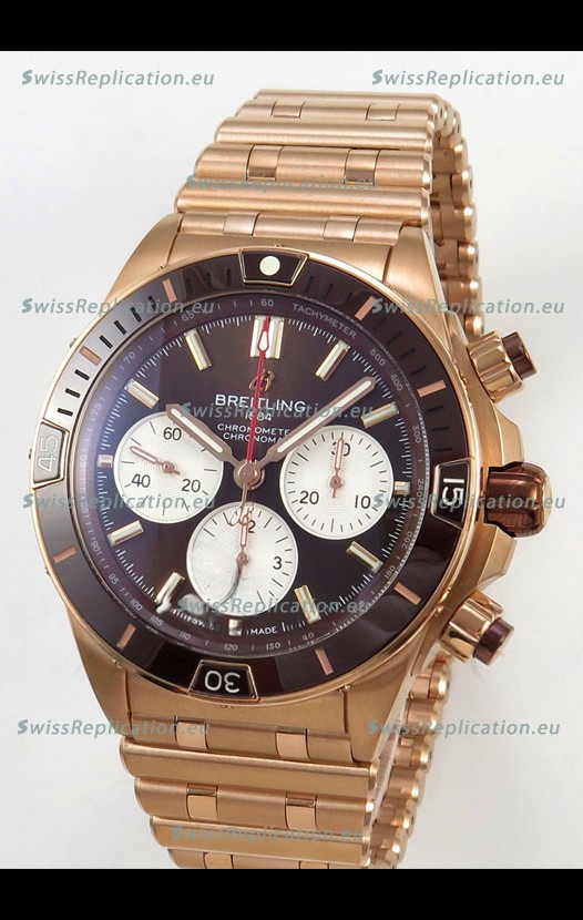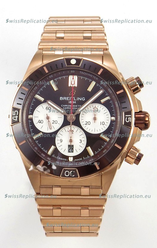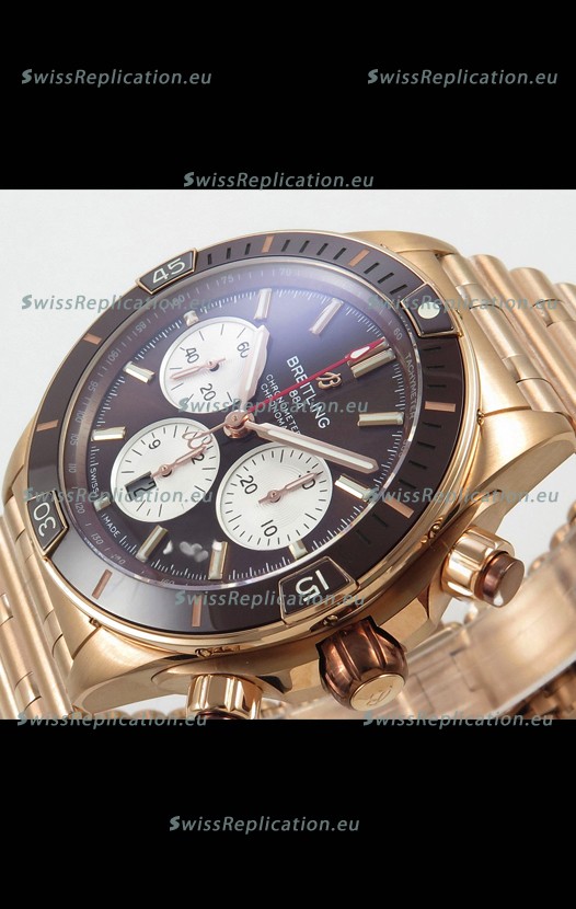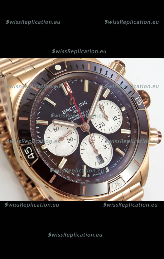 Description Breitling Chronomat Super Clone B01 42 Edition Swiss Rose Gold Casing Brown Dial