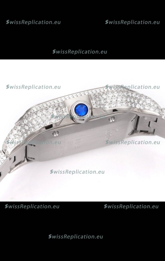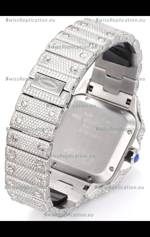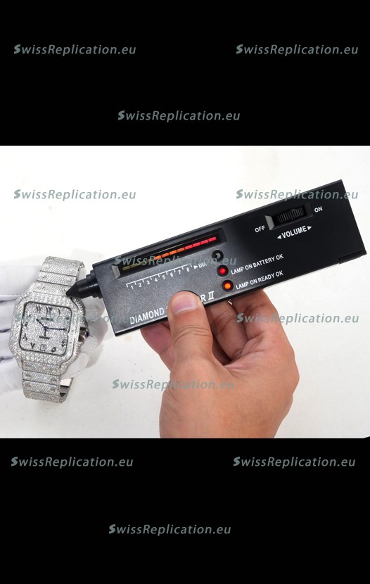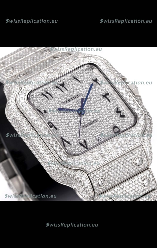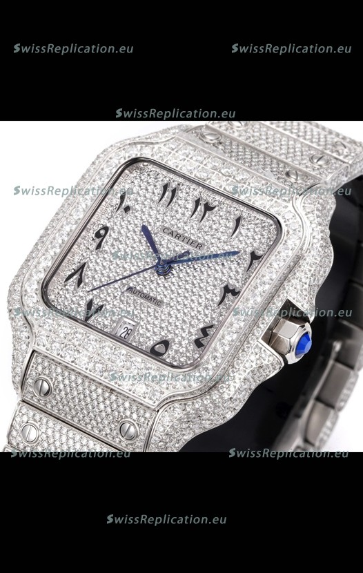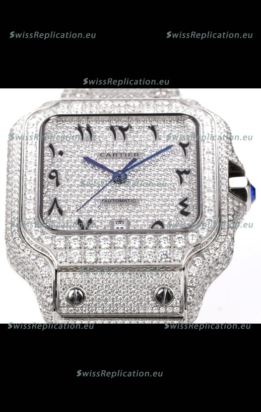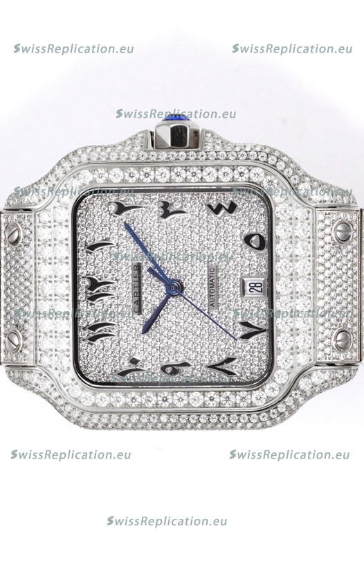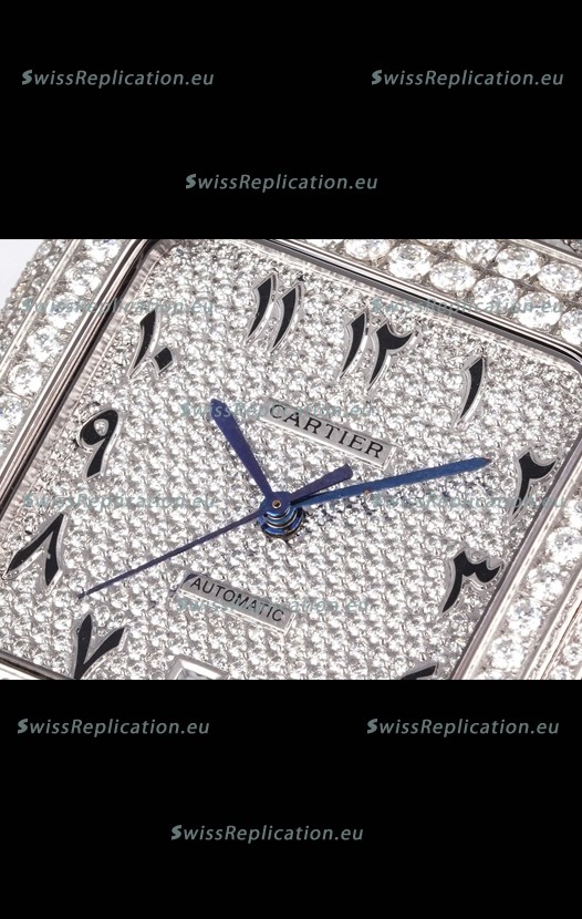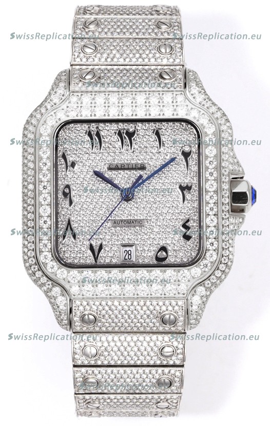 | Description | Cartier "Santos De Cartier" Stainless Steel W/ Diamonds Arabic Dial 1:1 Mirror Replica - 40MM - Genuine Diamonds |