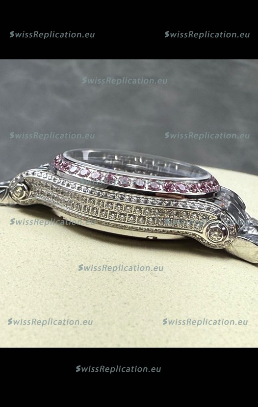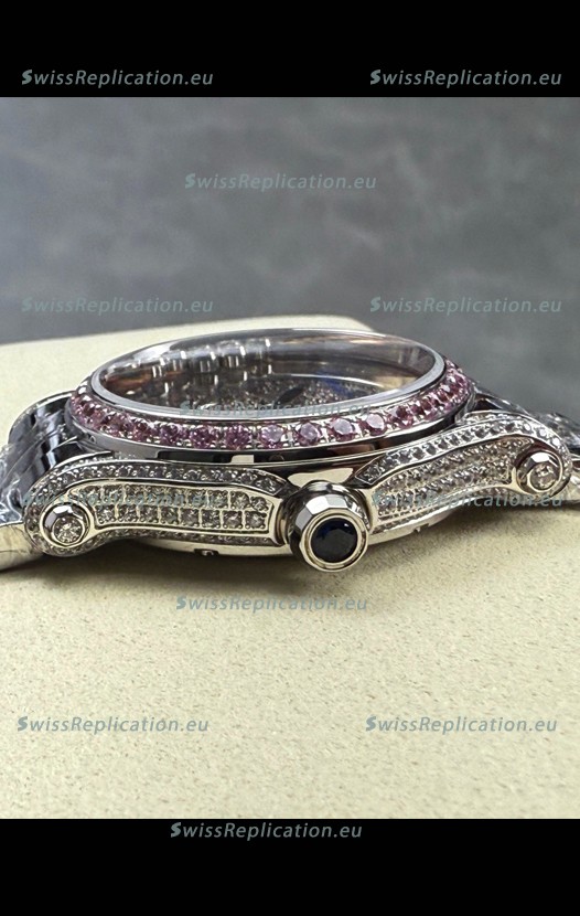 Mossanites Paved Dial with Rose Gold Roman Hour Numerals and Date Window at 4 O'Clock, Signature Floating Diamonds on Dial