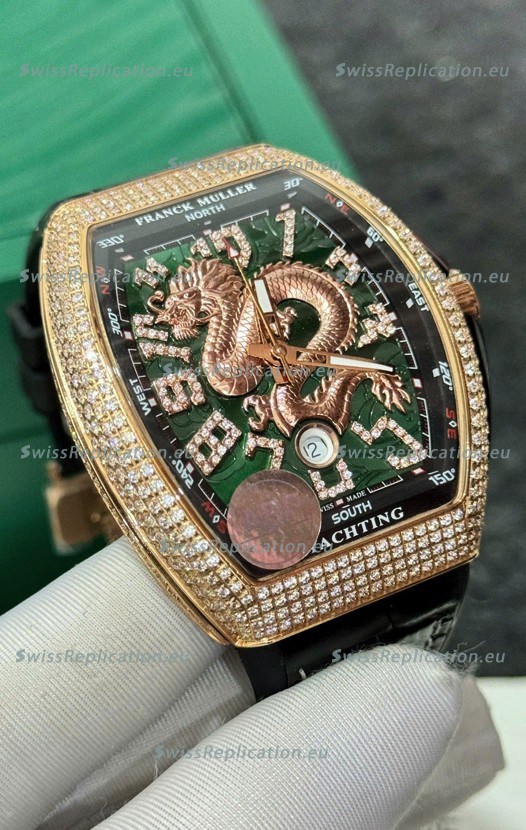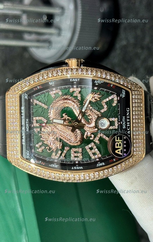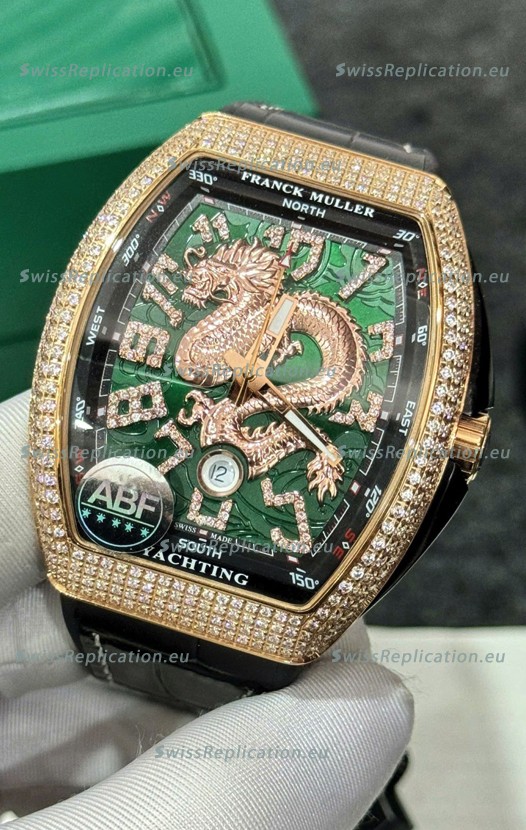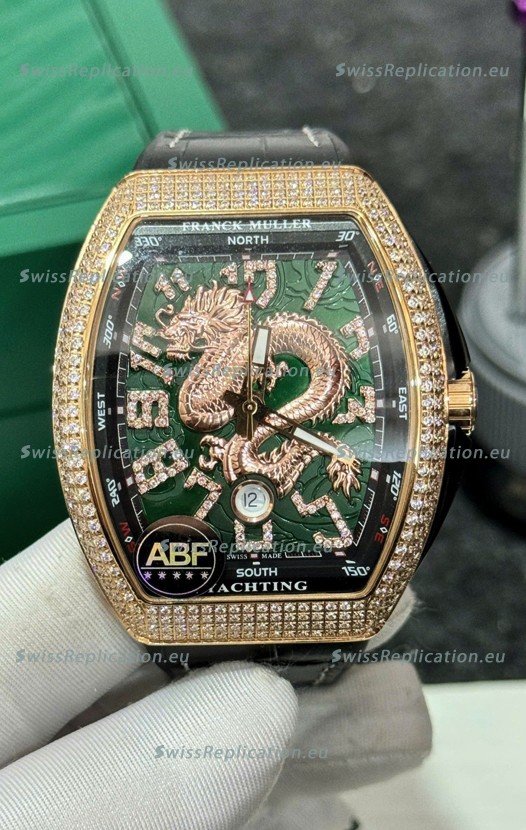 | Description | Franck Muller Vanguard Yachting Dragon V45 Green Dial in Gold Diamonds Bezel Swiss Replica |