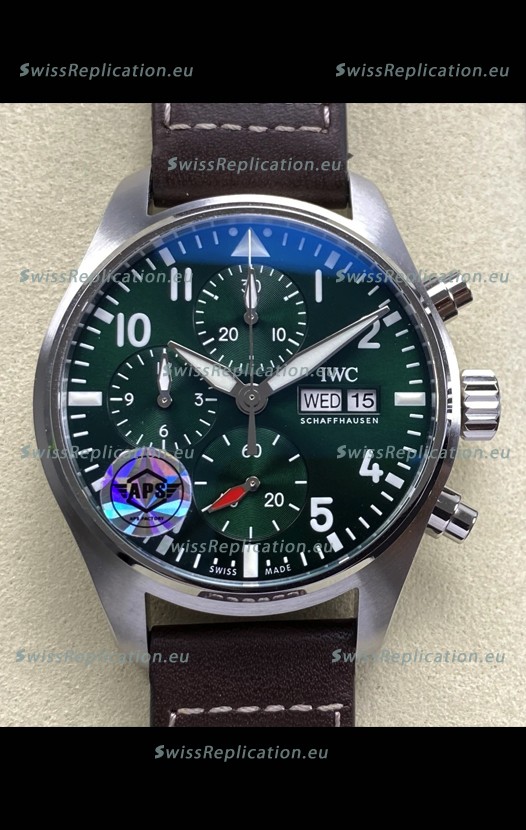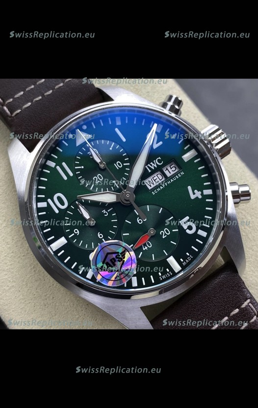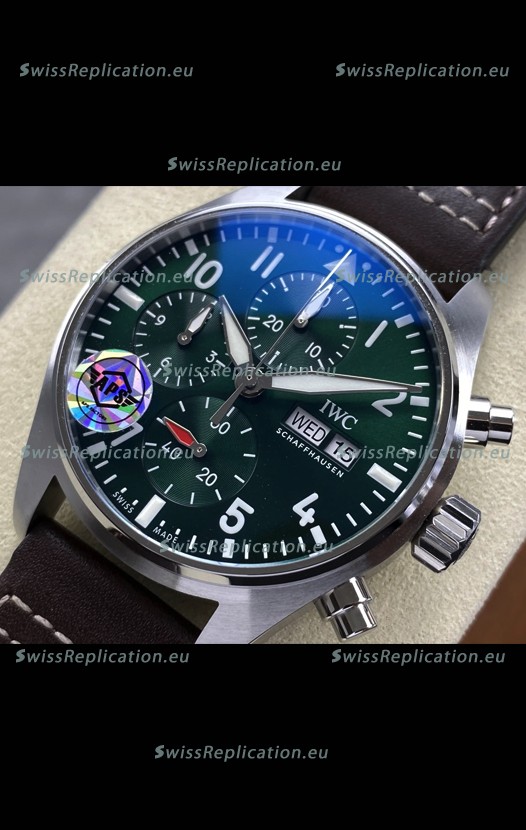| Description | IWC Super Clone Pilot Chronograph Edition Green Dial Leather Swiss Replica Watch |