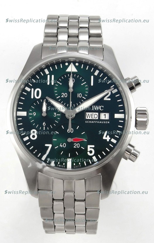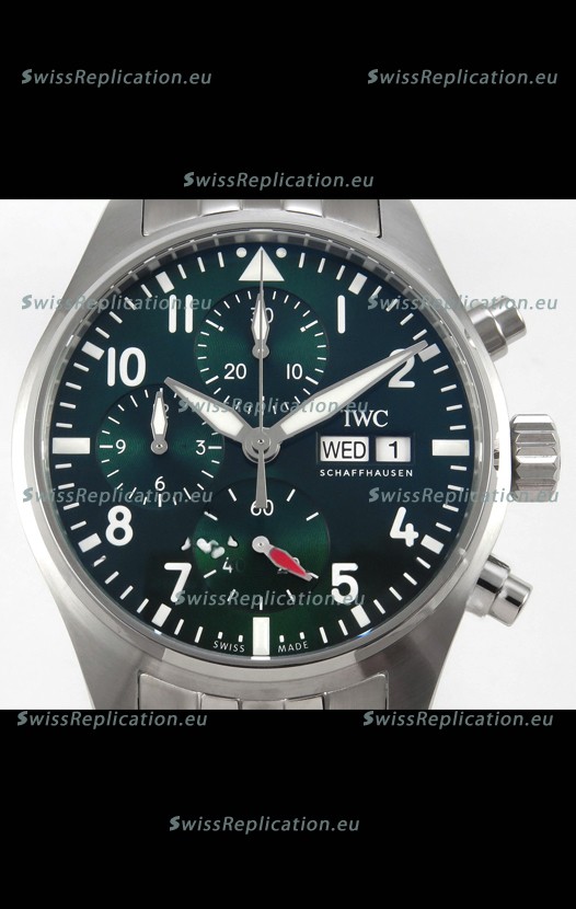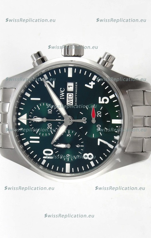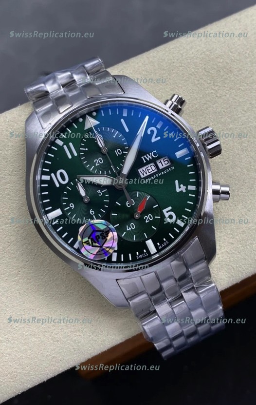 | Description | IWC Super Clone Pilot Chronograph Edition Green Dial Swiss Replica Watch |