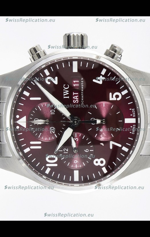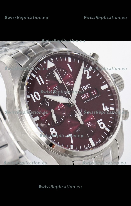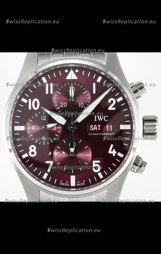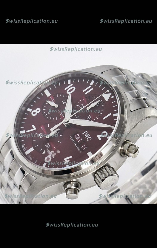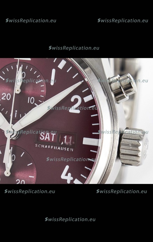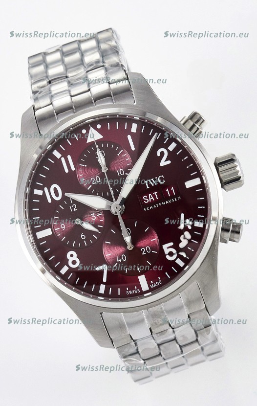 | Description | IWC Super Clone Pilot Chronograph Edition Red Dial Swiss Replica Watch |