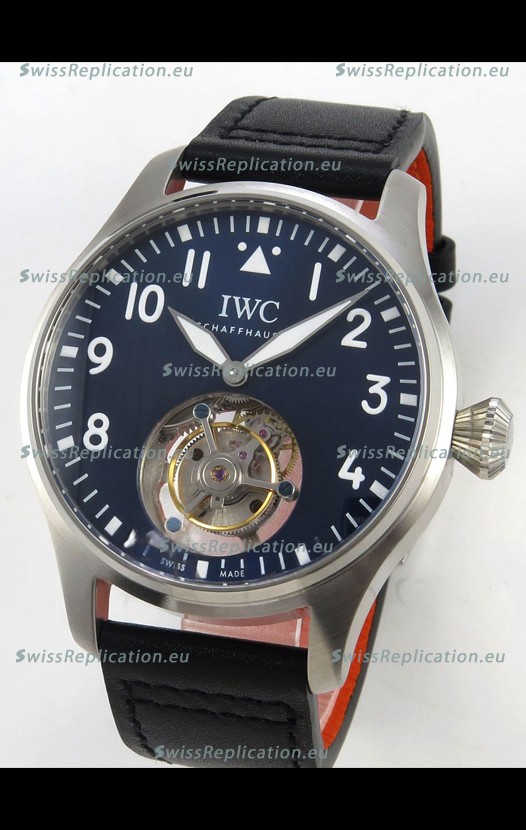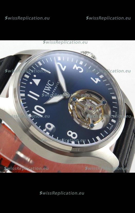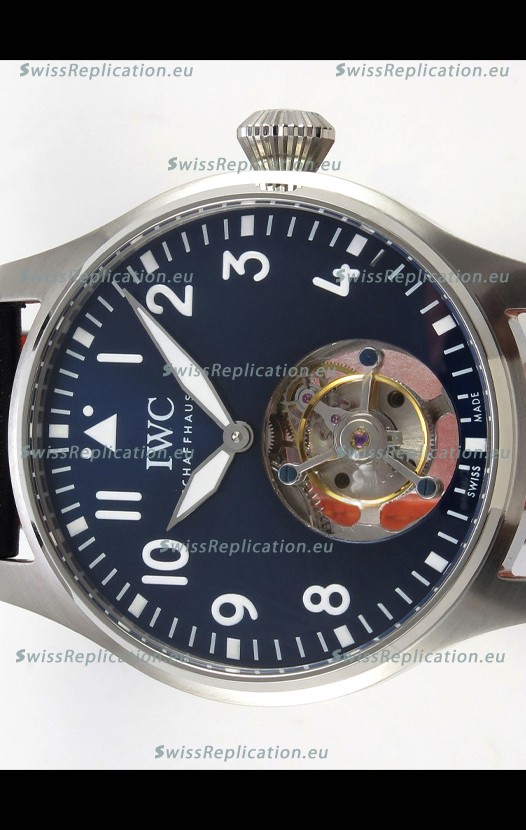 | Description | IWC Super Clone Portugese Hand-Wound Genuine Tourbillon Blue Dial Steel Casing Watch |