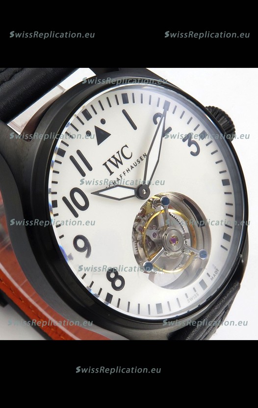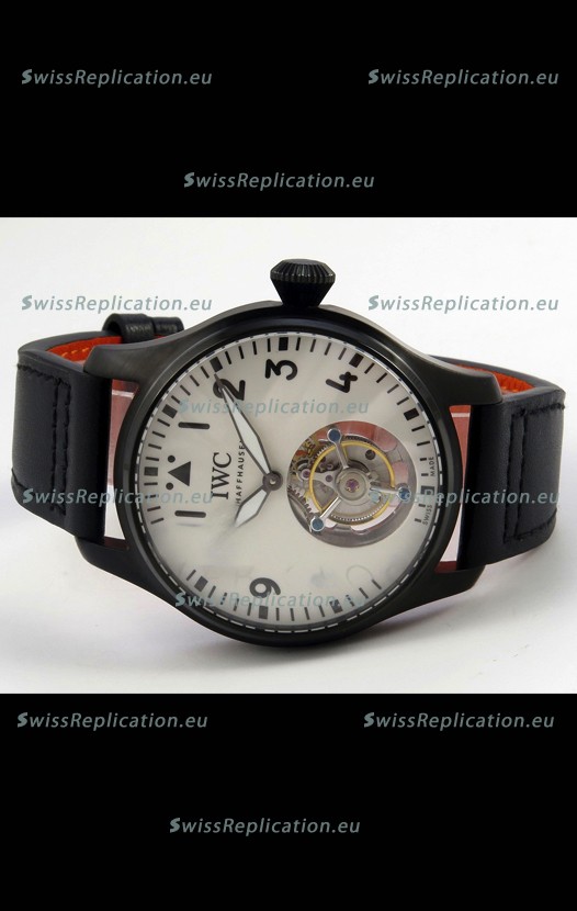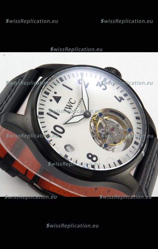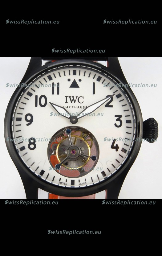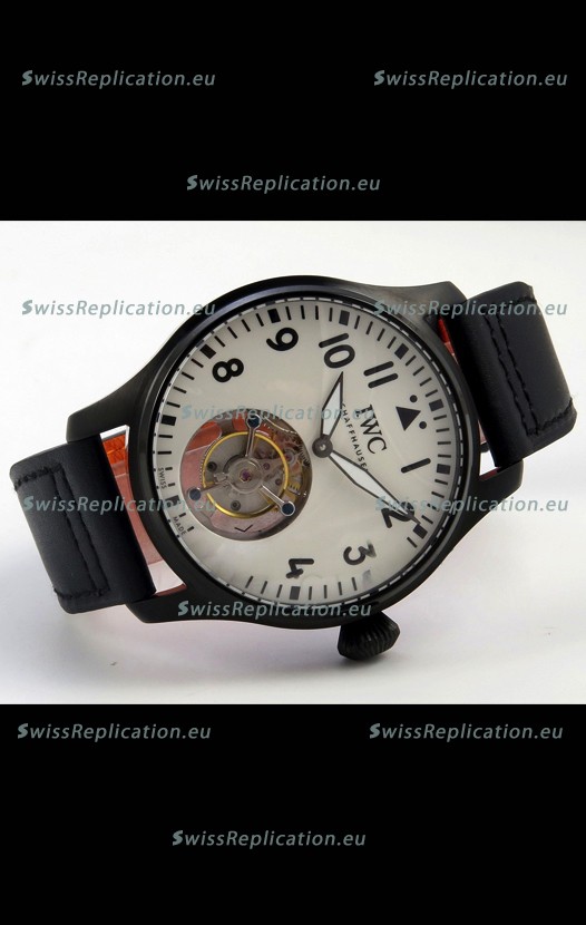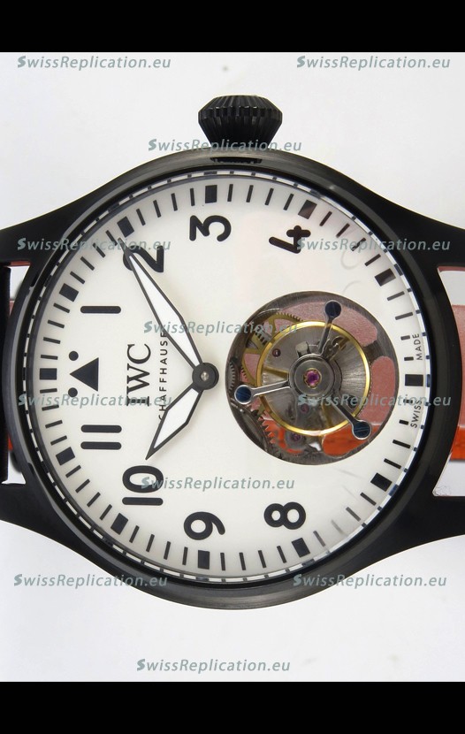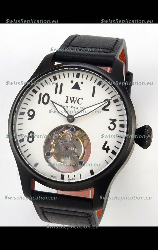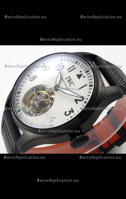 | Description | IWC Super Clone Portugese Hand-Wound Genuine Tourbillon White Dial PVD Casing Watch |