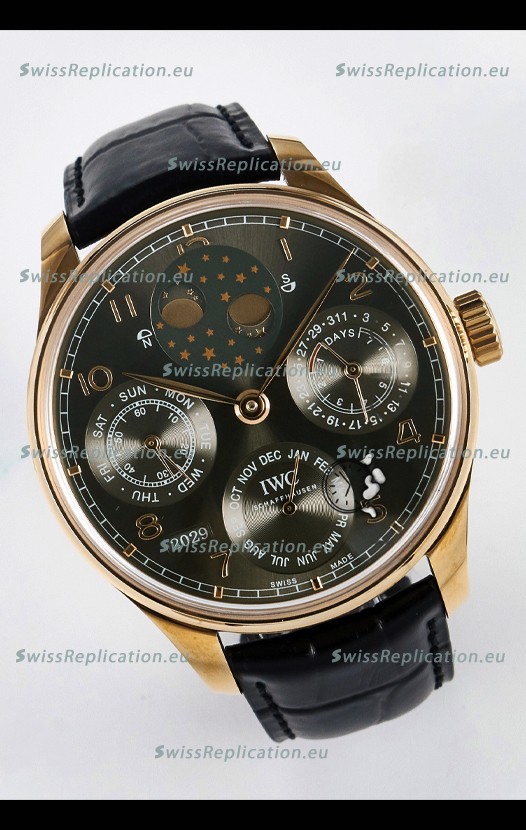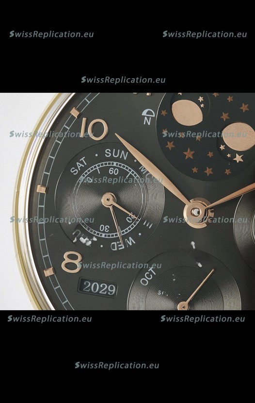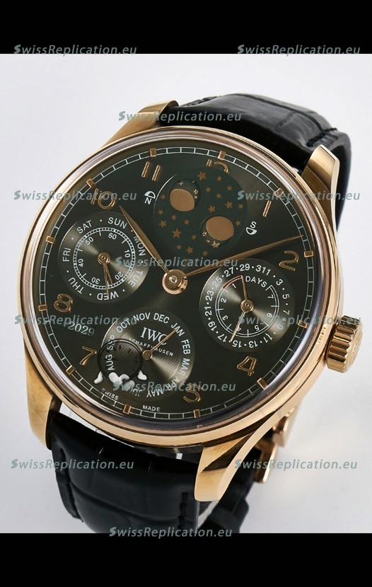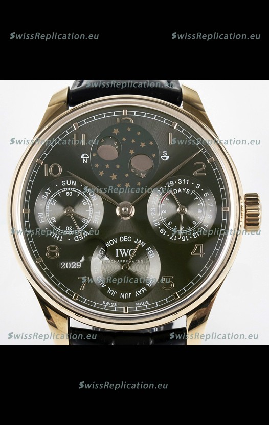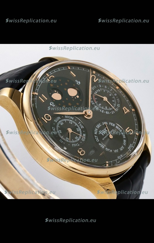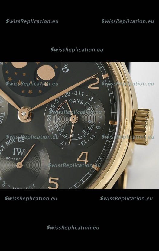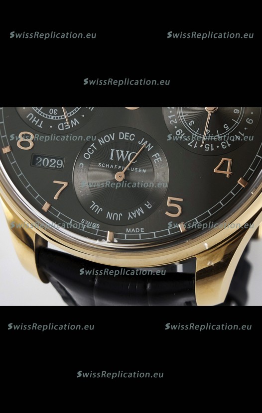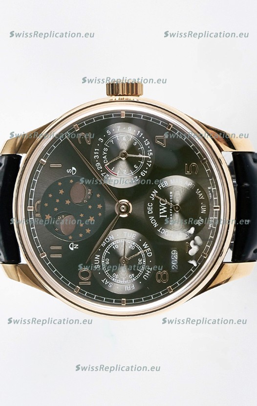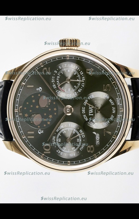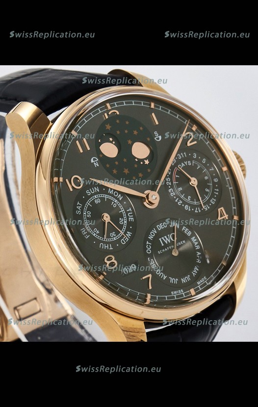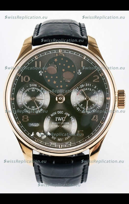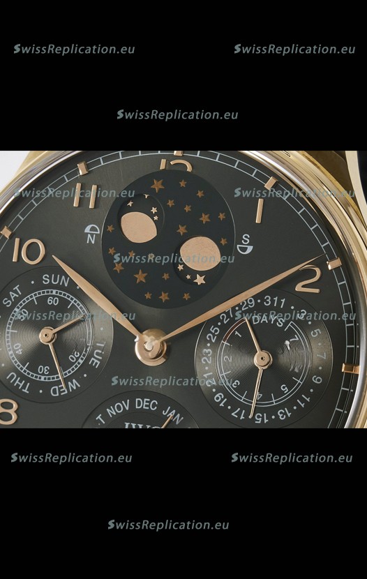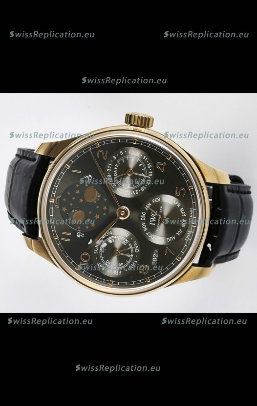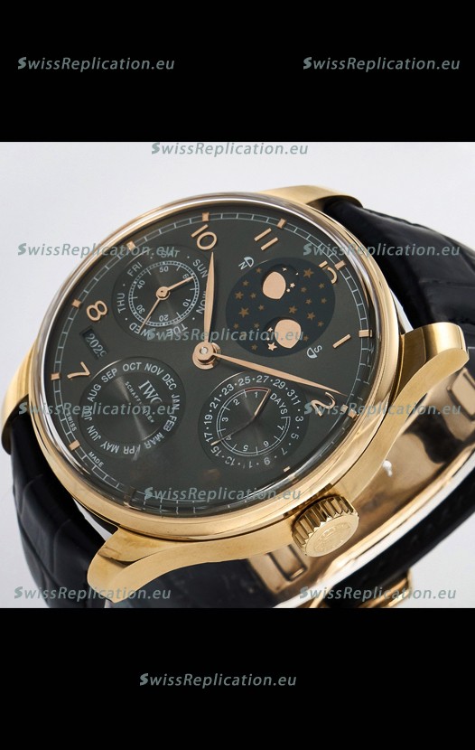 | Description | IWC Super Clone Portuguese Perpetual Calendar Rose Gold Grey Dial Replica Watch |