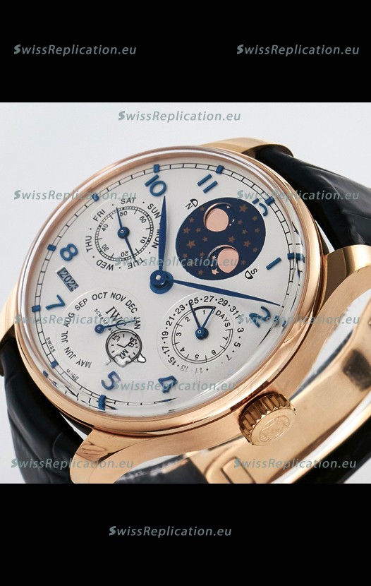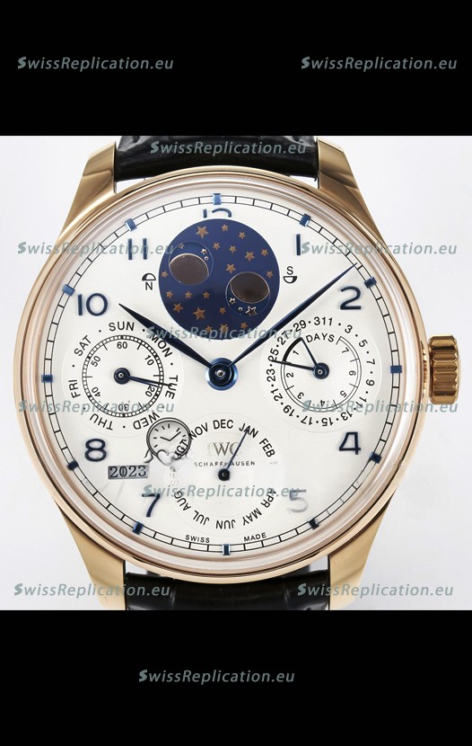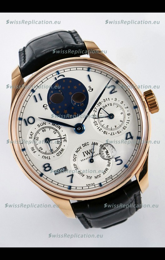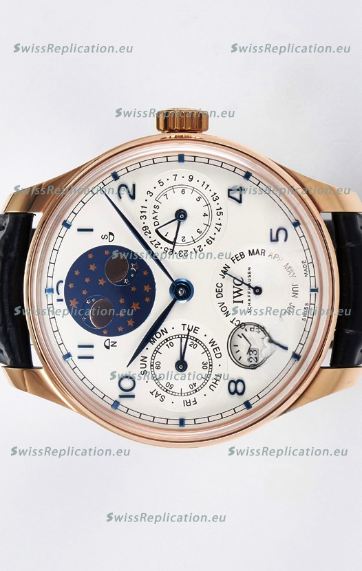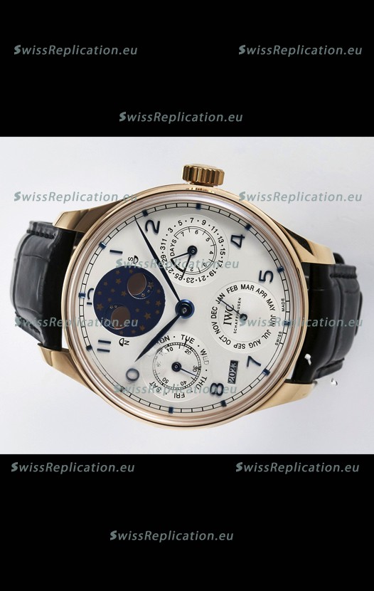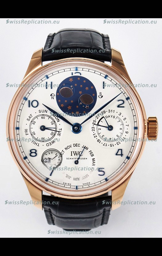 | Description | IWC Super Clone Portuguese Perpetual Calendar Rose Gold White Dial Replica Watch |