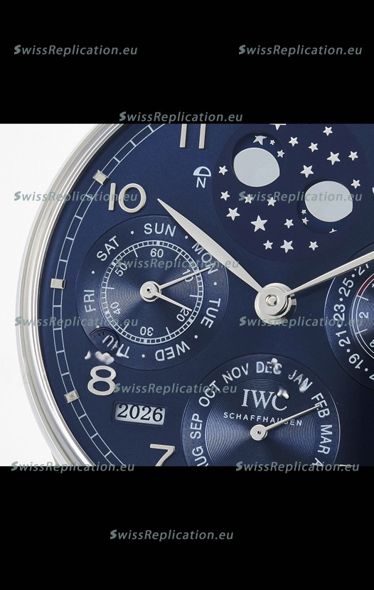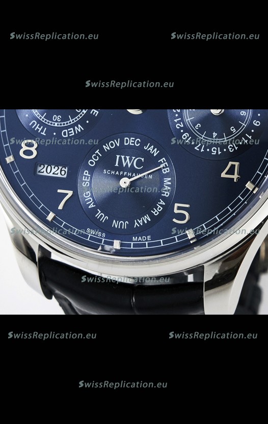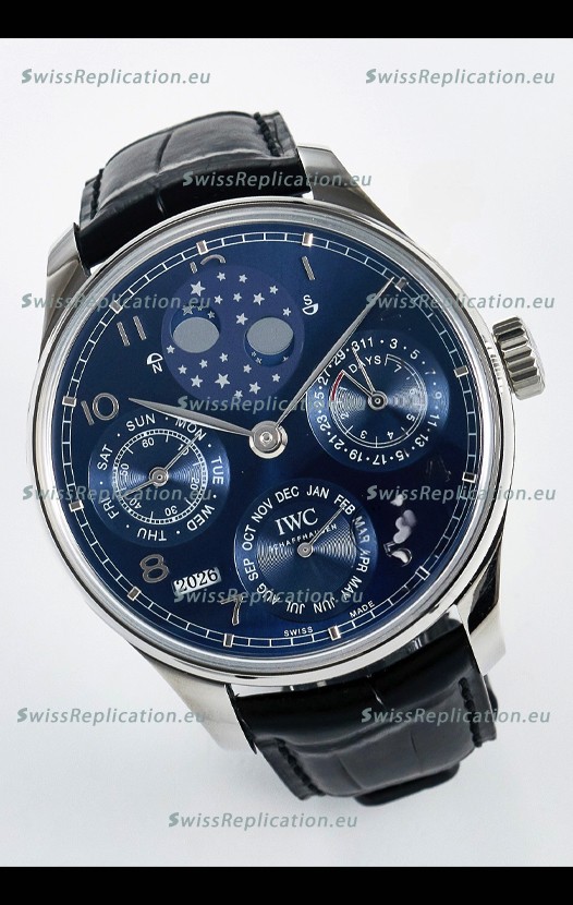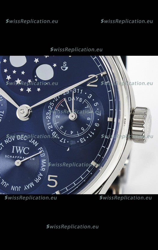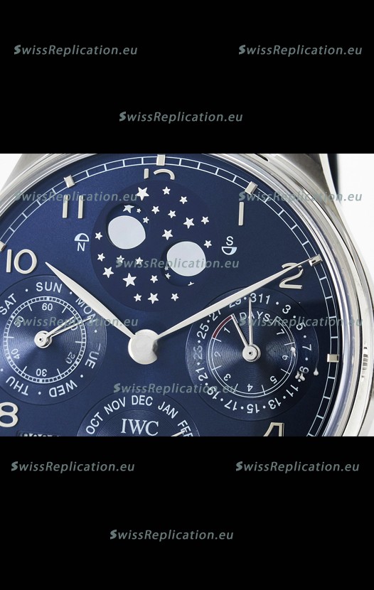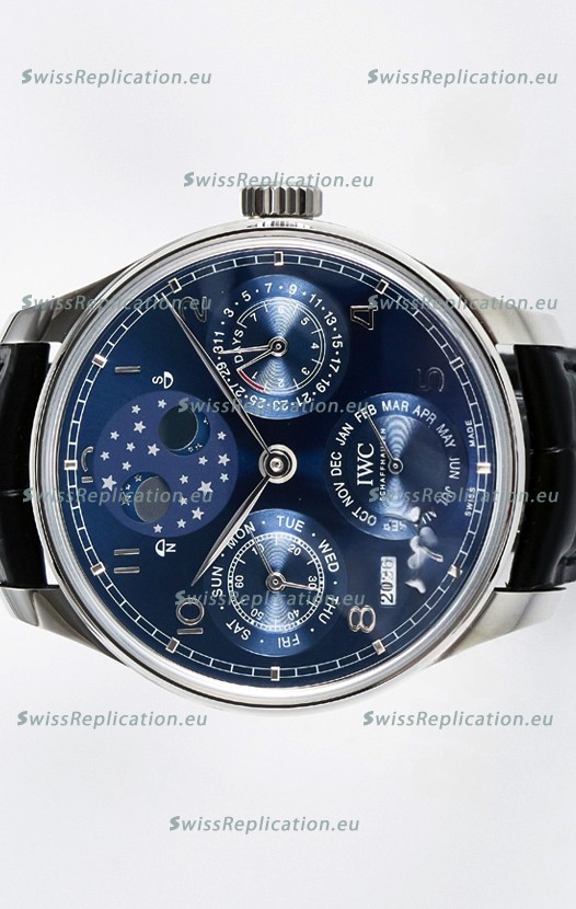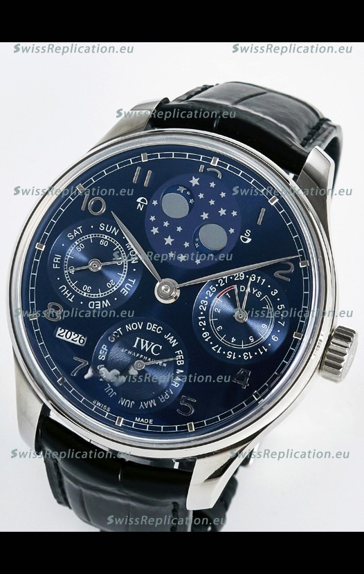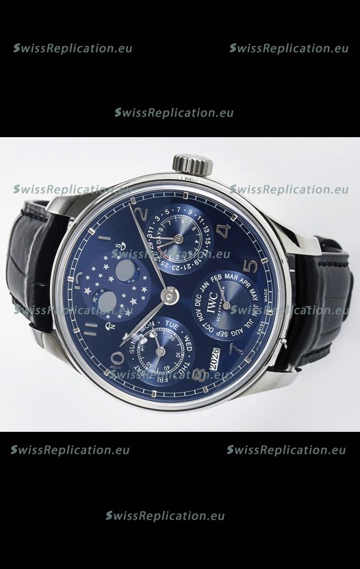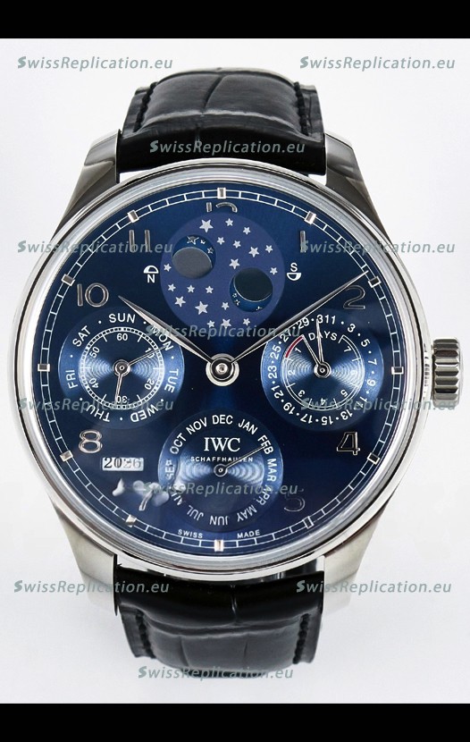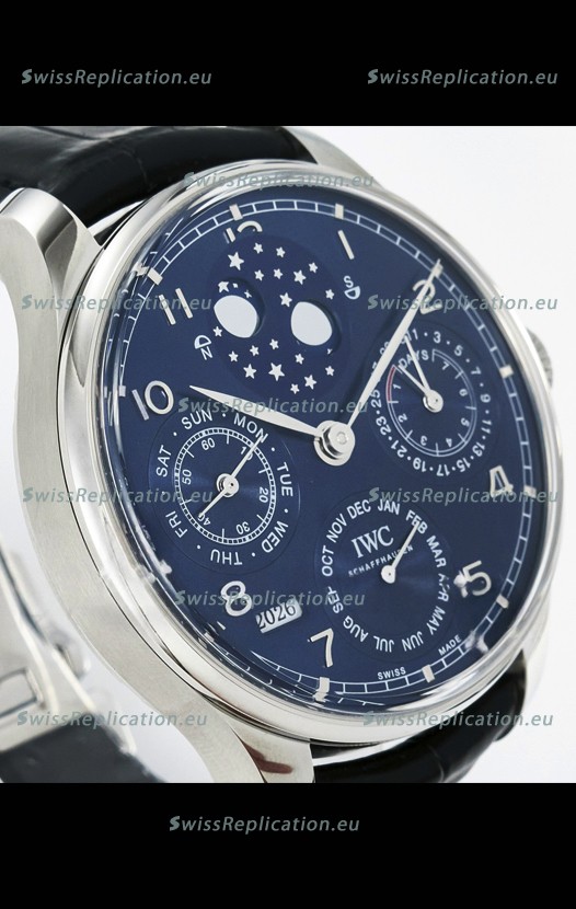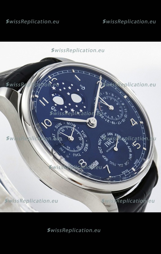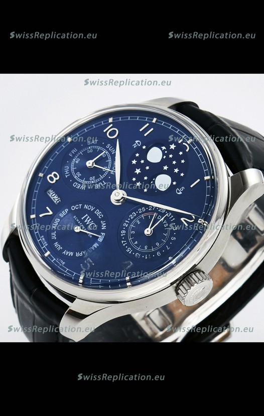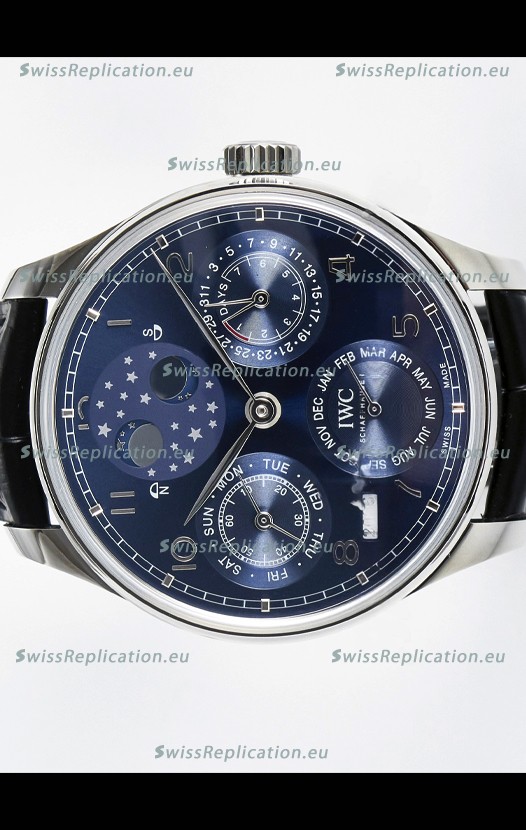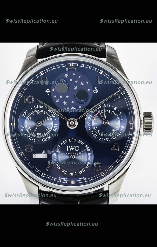 | Description | IWC Super Clone Portuguese Perpetual Calendar Stainless Steel Blue Dial Replica Watch |