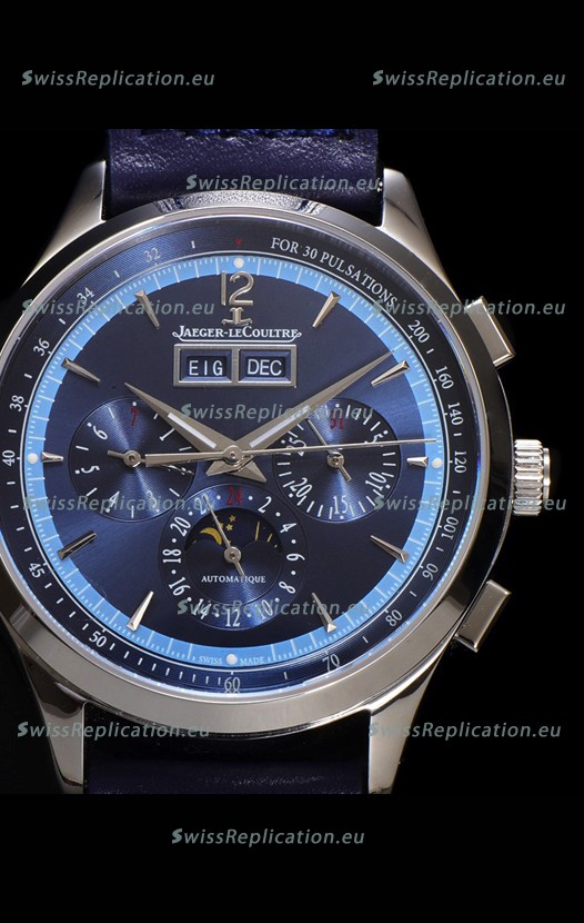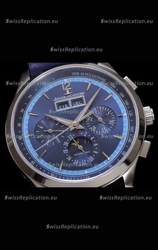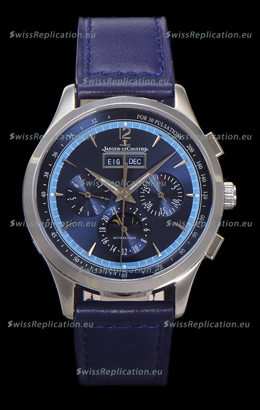 | Description | Jaeger LeCoultre Master Control Chronograph Calendar Steel Casing Blue Dial Watch |