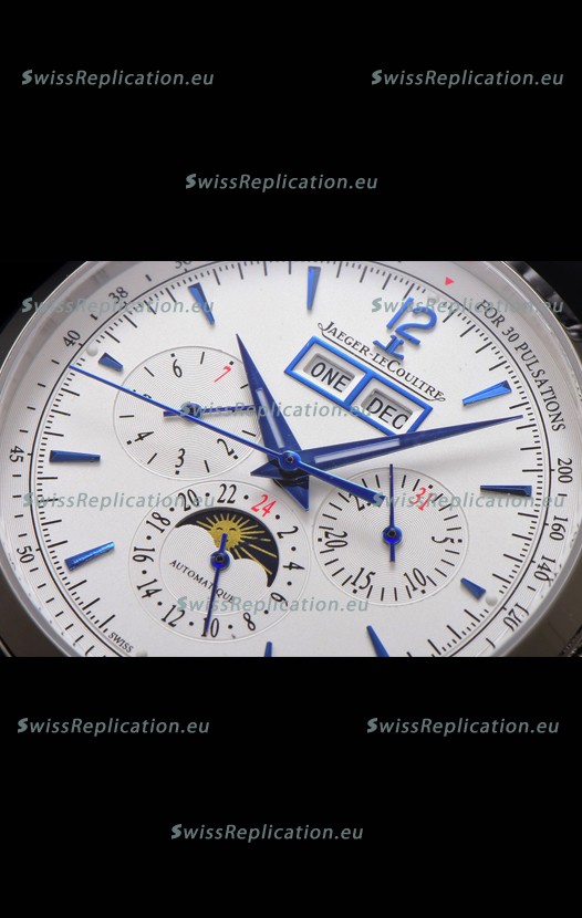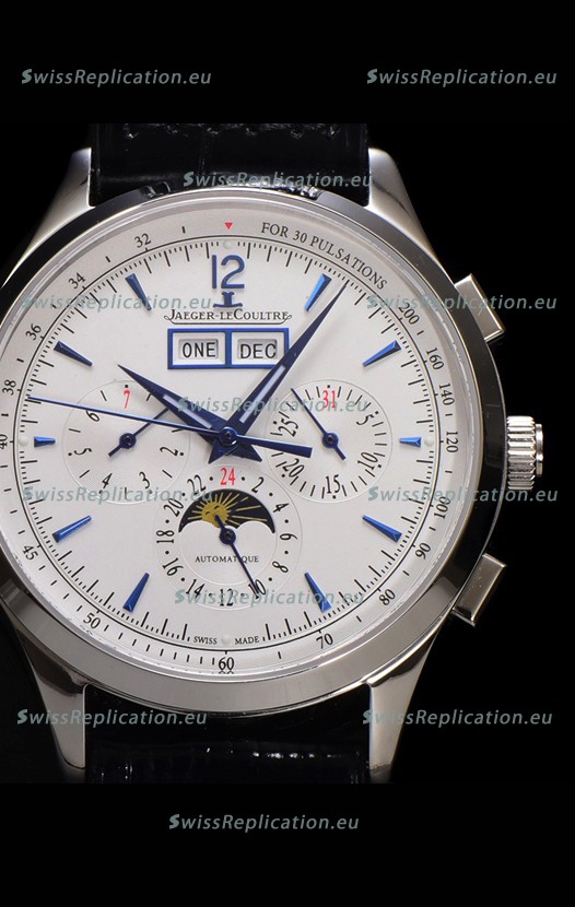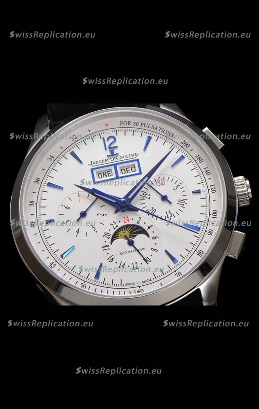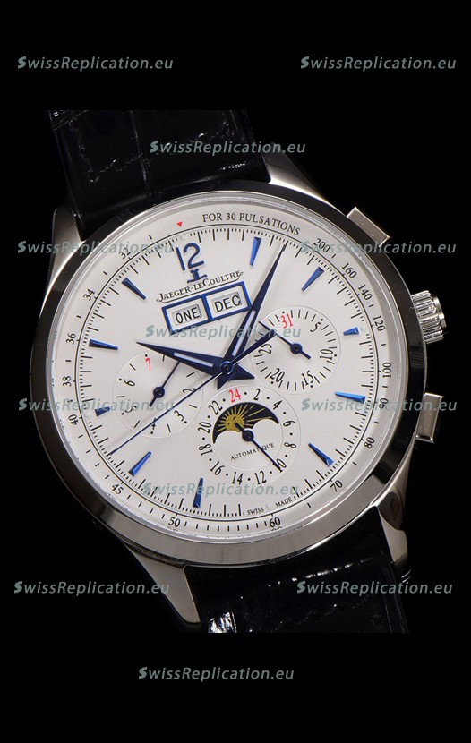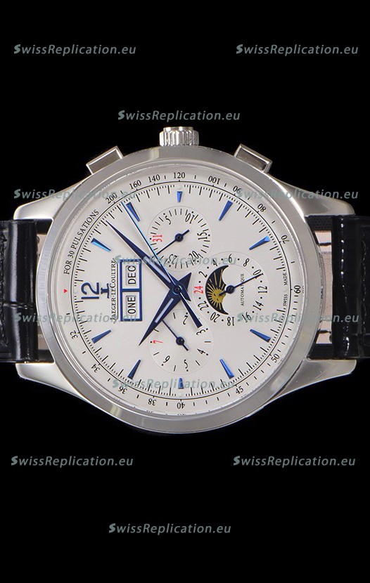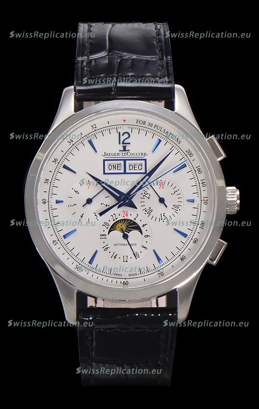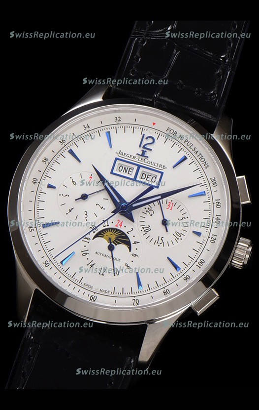 | Description | Jaeger LeCoultre Master Control Chronograph Calendar Steel Casing White Dial Watch |