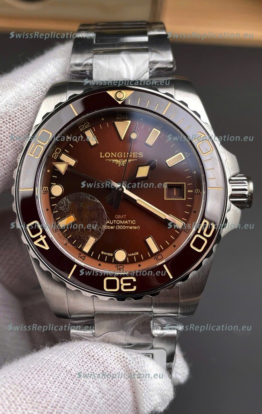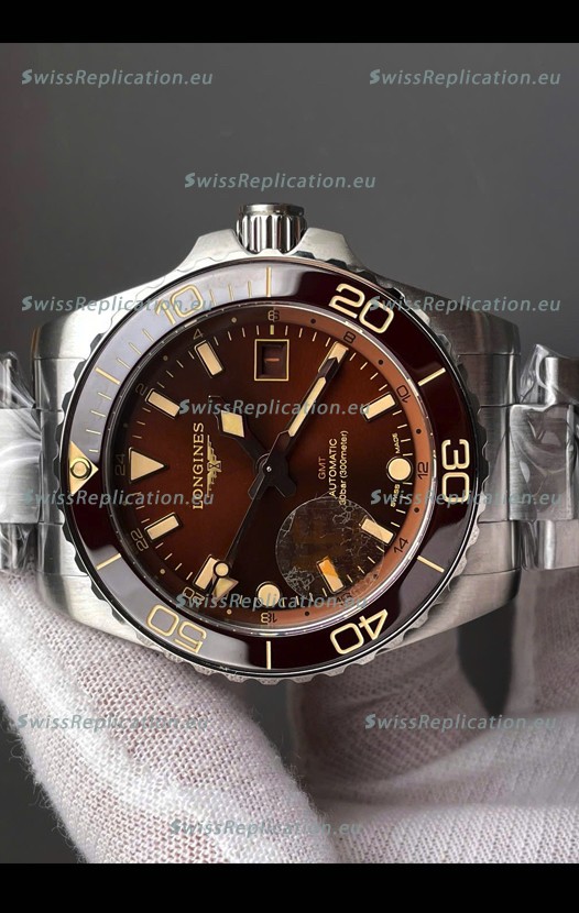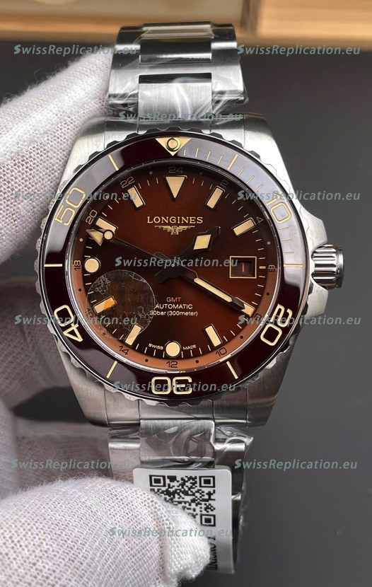 | Description | Longines HydroConquest GMT 1:1 Mirror Swiss Replica Watch in Brown Dial Steel Strap |