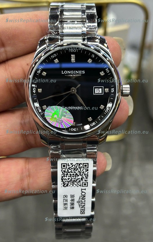 | Description | Longines Master Collection Automatic Moonphase Black Dial Swiss Replica Watch Steel Strap |