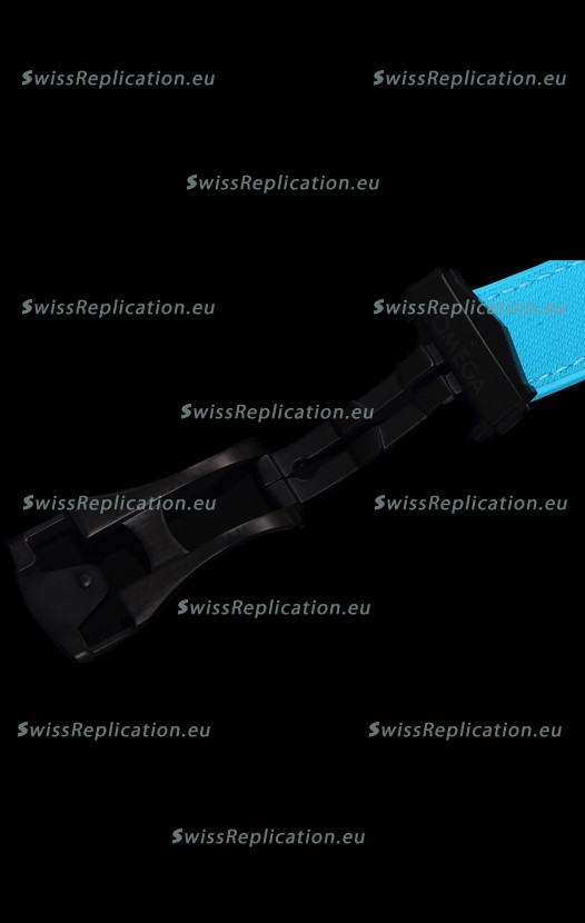 Black Rubber Strap with Omega Styled Folding Clasps complete with Omega Markings and Engravings