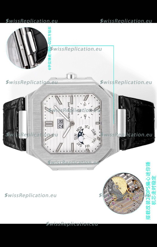 | Description | Patek Philippe Cubitus 5822 904L Steel Casing White Dial Swiss Replica Watch |