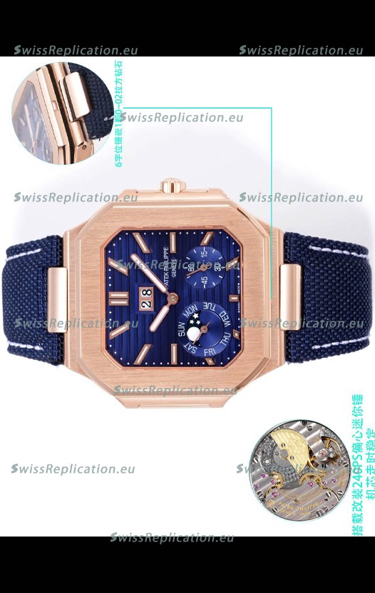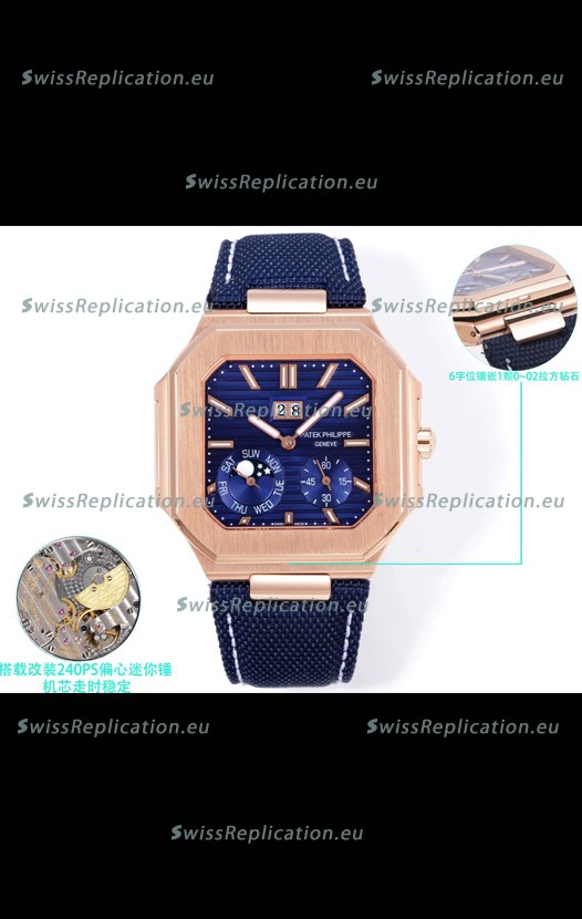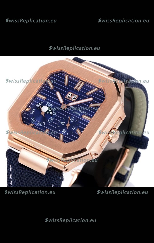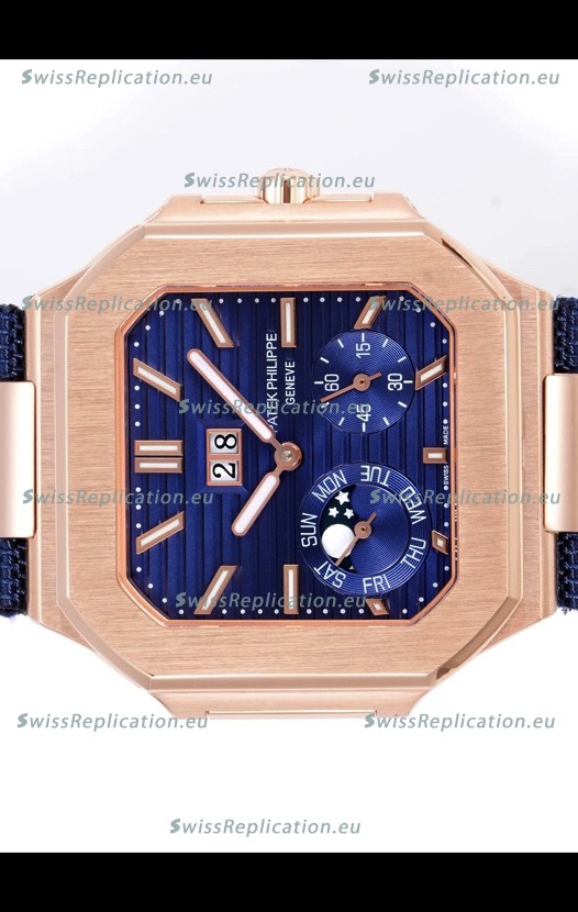 | Description | Patek Philippe Cubitus 5822 Rose Gold Casing Blue Dial Swiss Replica Watch |