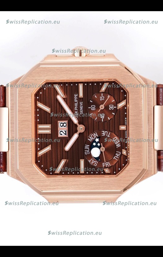 | Description | Patek Philippe Cubitus 5822 Rose Gold Casing Brown Dial Swiss Replica Watch |
