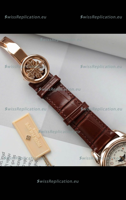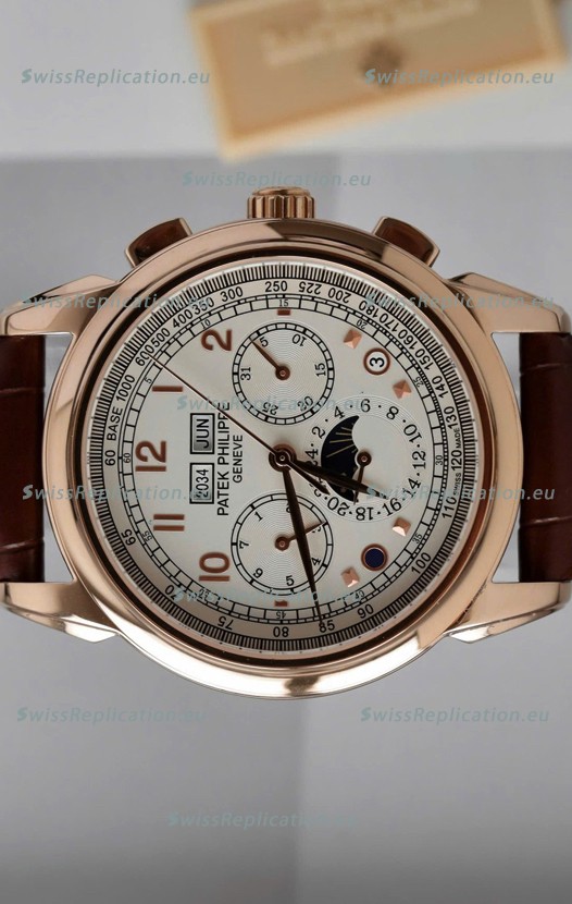 | Description | Patek Philippe Grand Complications 5270 Swiss Replica Watch in Rose Gold Casing White Dial |