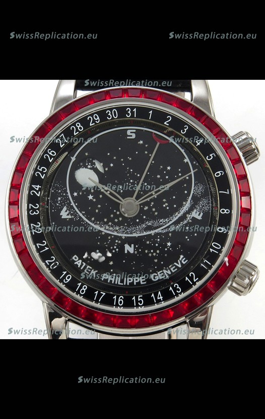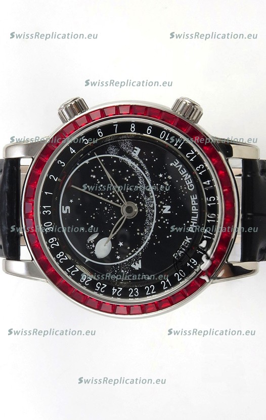 | Description | Patek Philippe Grand Complications 6102 Black Dial Red Diamonds Swiss Replica Watch |