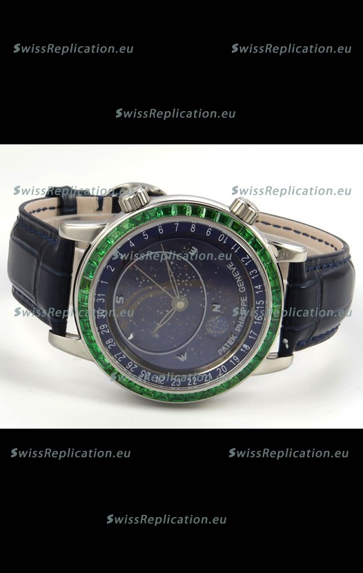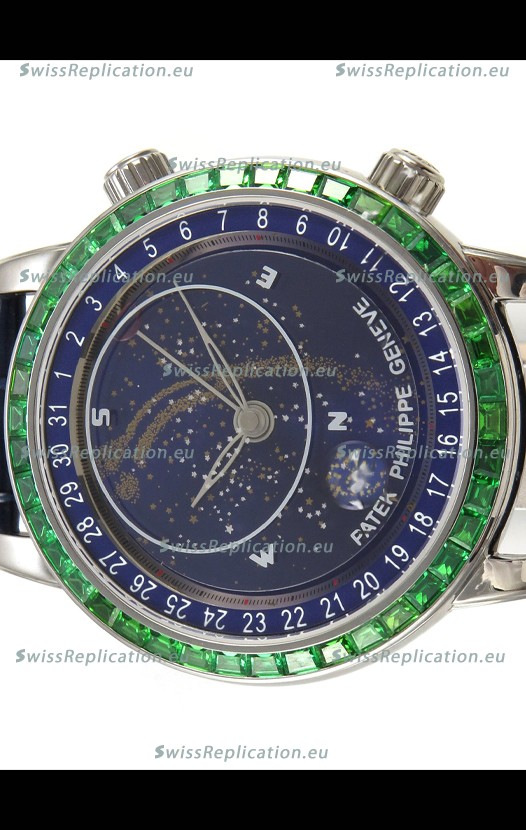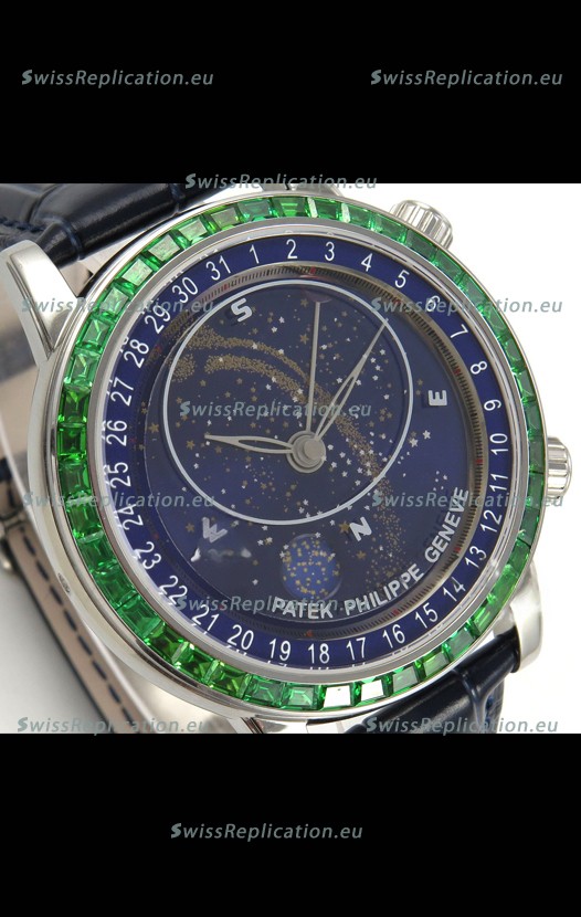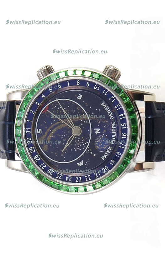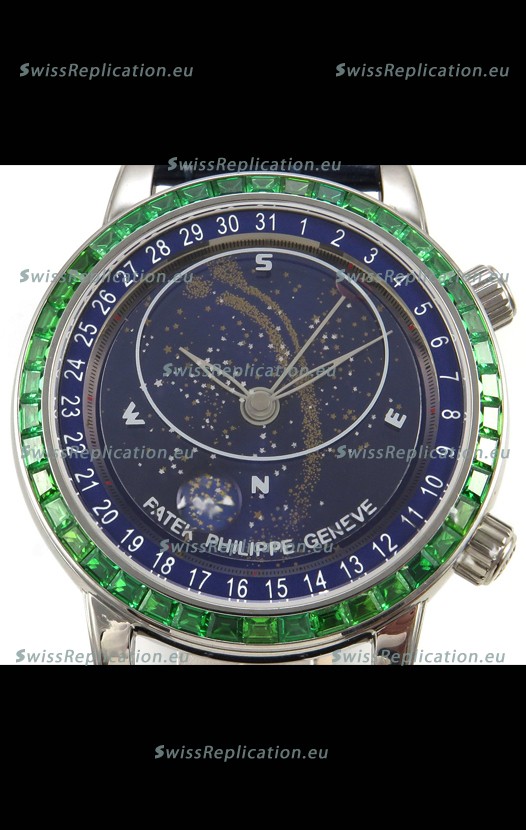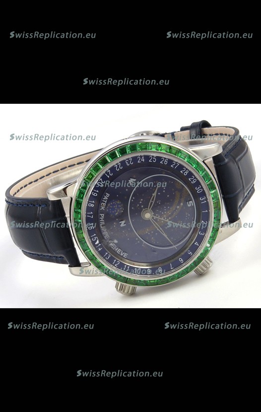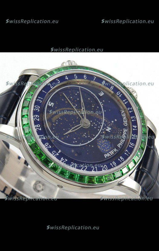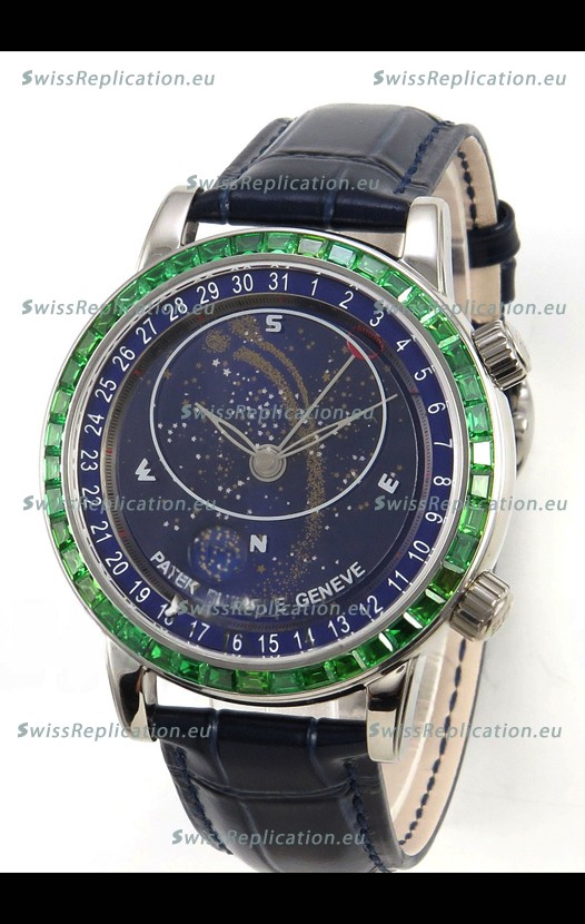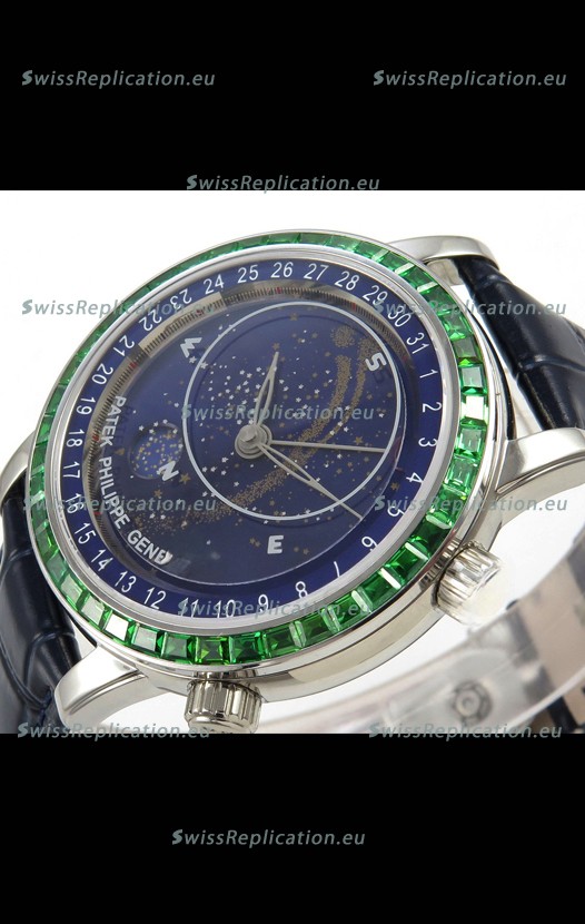 | Description | Patek Philippe Grand Complications 6102 Blue Dial Green Diamonds Swiss Replica Watch |