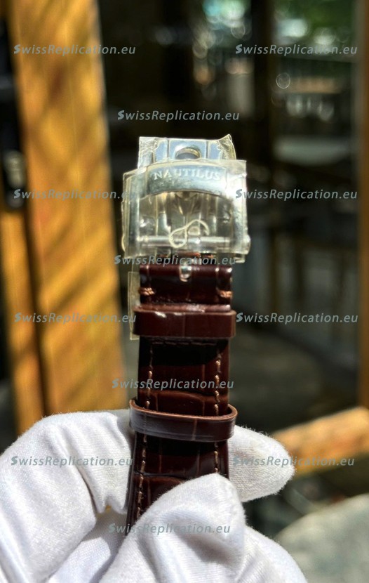 Genuine Leather Strap with Double Fold Stainlless Steel Clasps with Patek Philippe Markings/Engravings