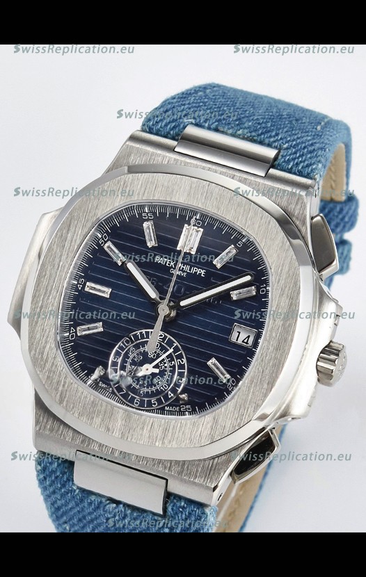 | Description | Patek Philippe Nautilus 5980/60G-001 Blue Dial Fabric Strap Crystal Numerals |