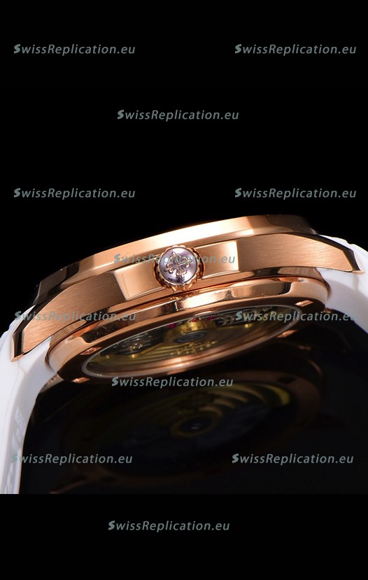 | Description | Patek Philippe Super Clone Aquanaut Rose Gold White Dial 38.5MM Watch |