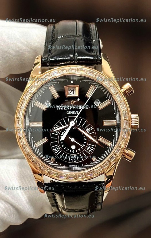 | Description | Patek Philippe Super Clone Complications 5961 Rose Gold Watch with Mossanites |