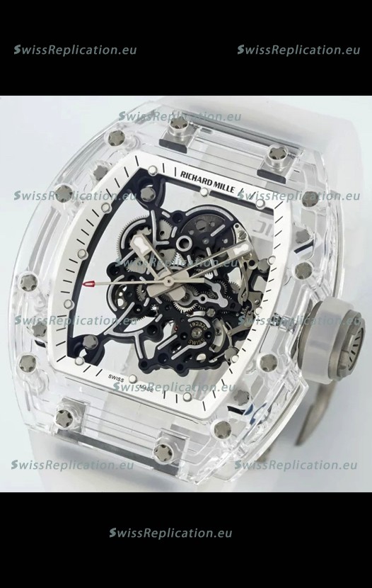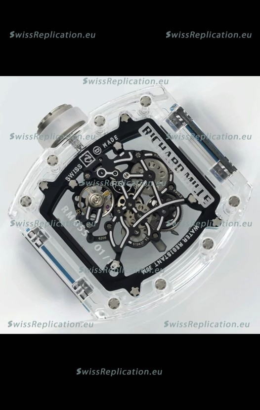 | Description | Richard Mille RM055 Transparent Sapphires Casing with Genuine Tourbillon Super Clone Watch |