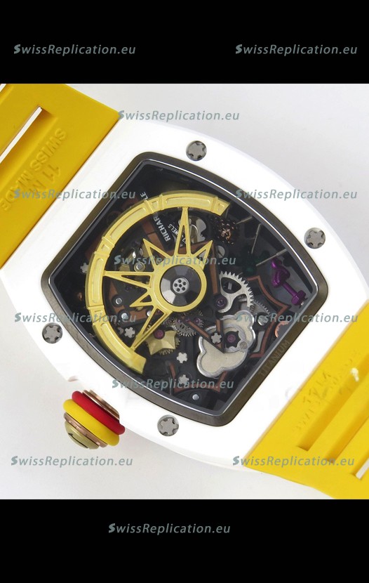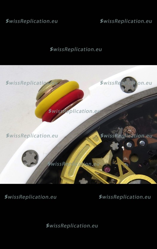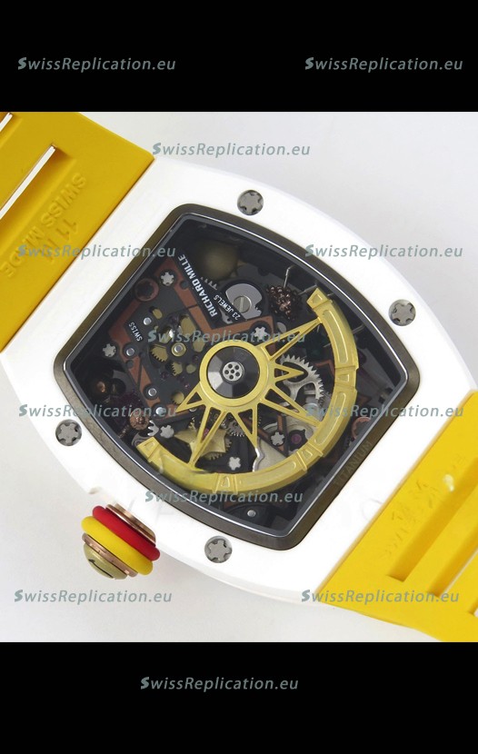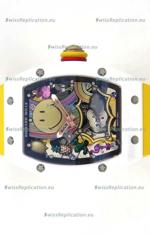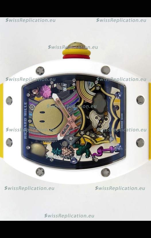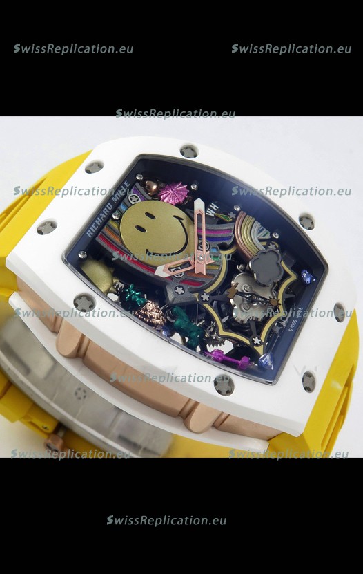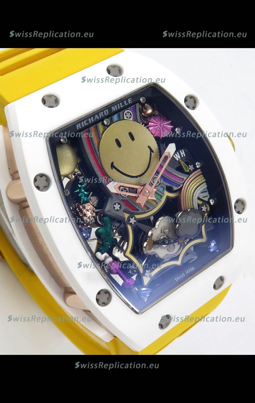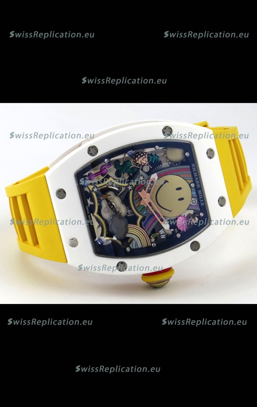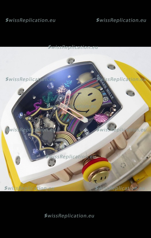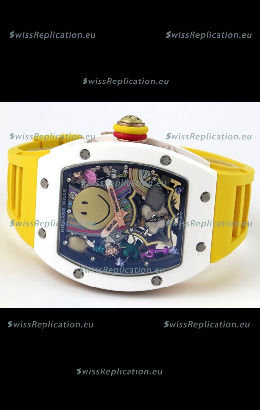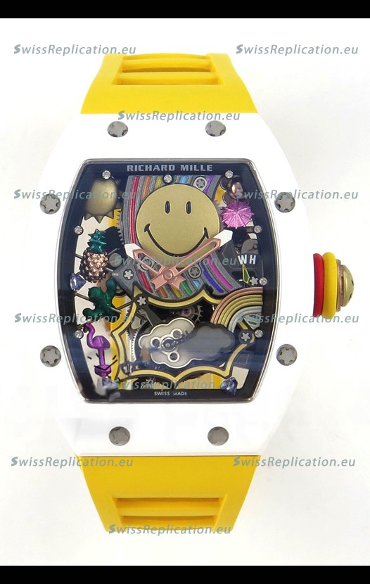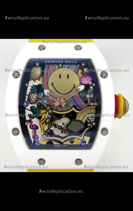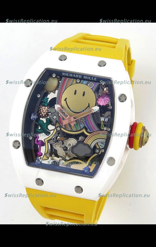 | Description | Richard Mille Super Clone RM088 Smiley Tourbillon White Ceramic Rubber Strap Watch |