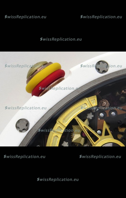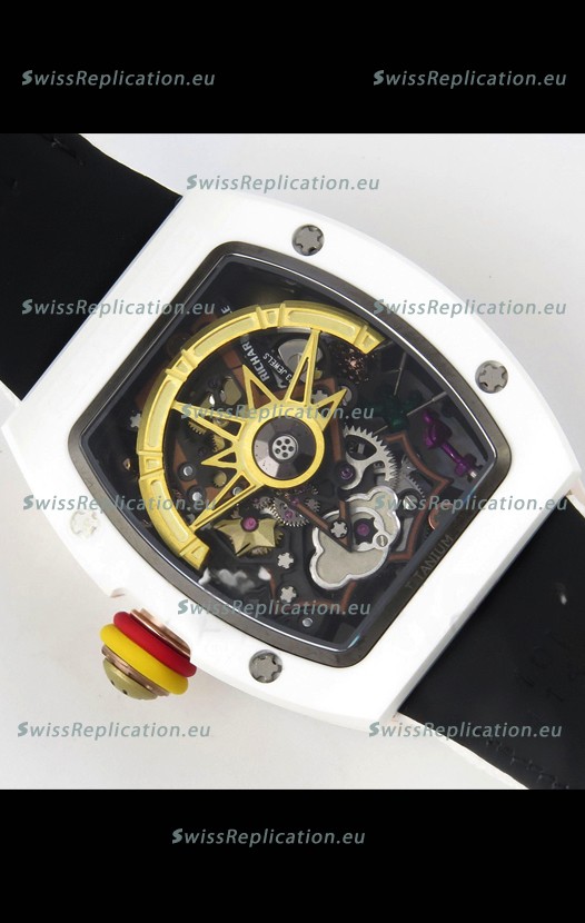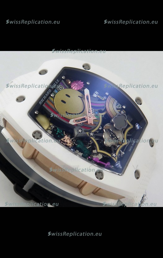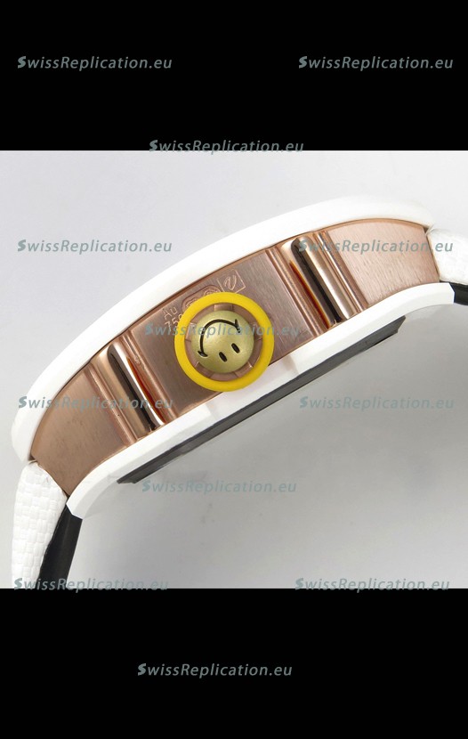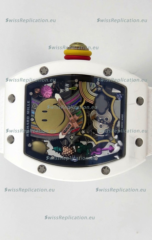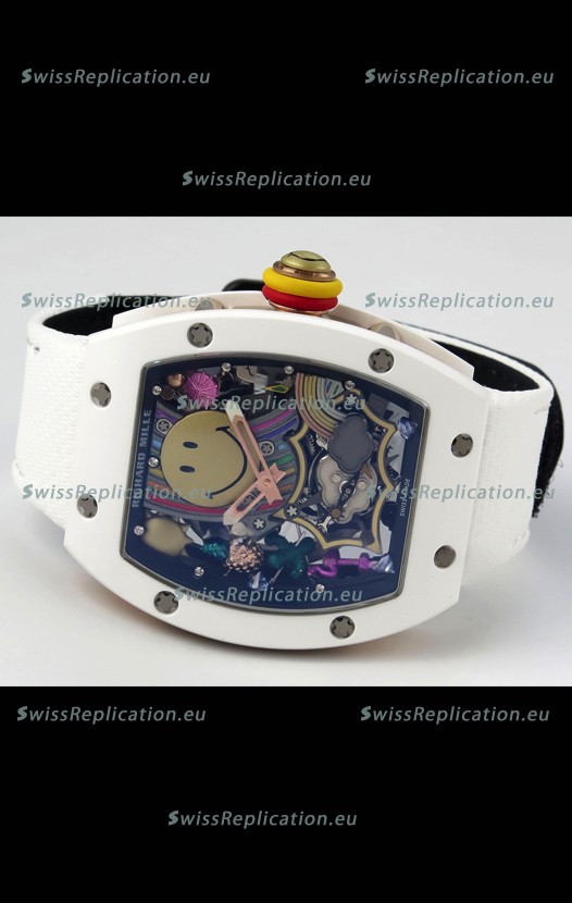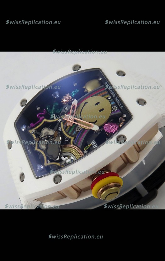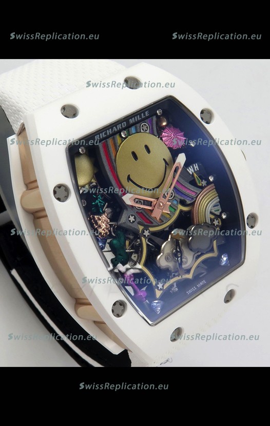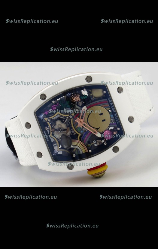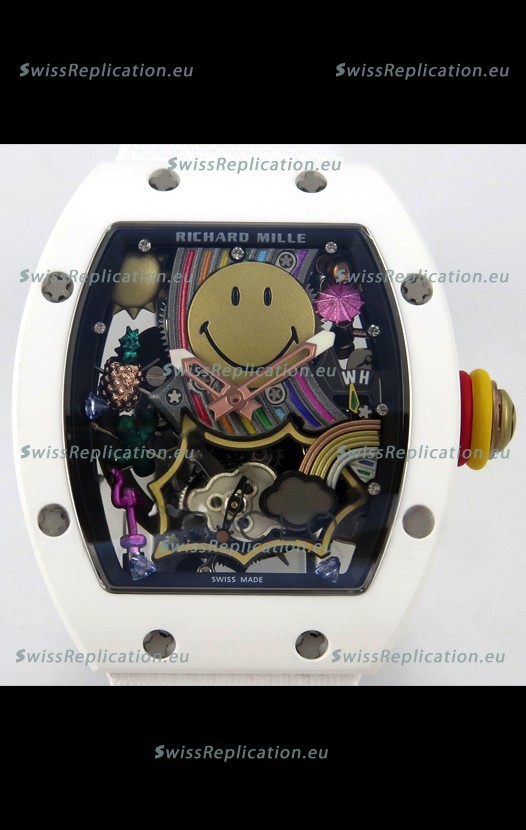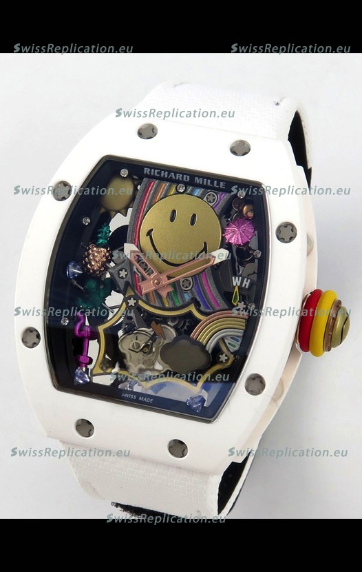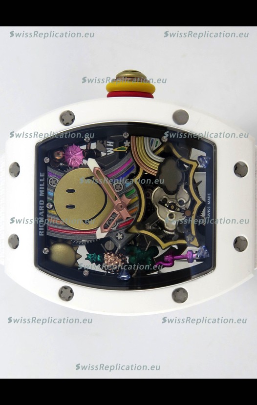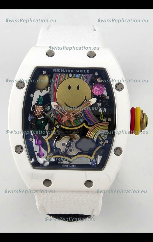 | Description | Richard Mille Super Clone RM088 Smiley Tourbillon White Ceramic Velcro Strap Watch |