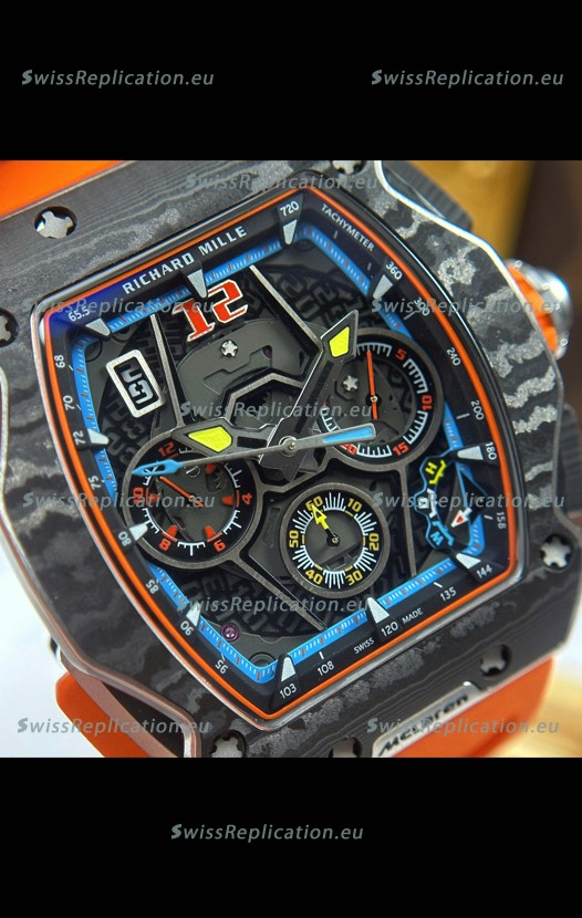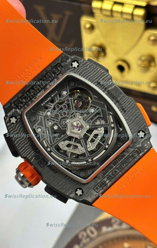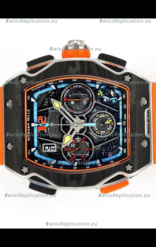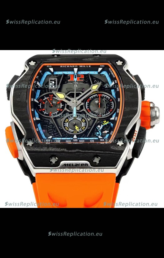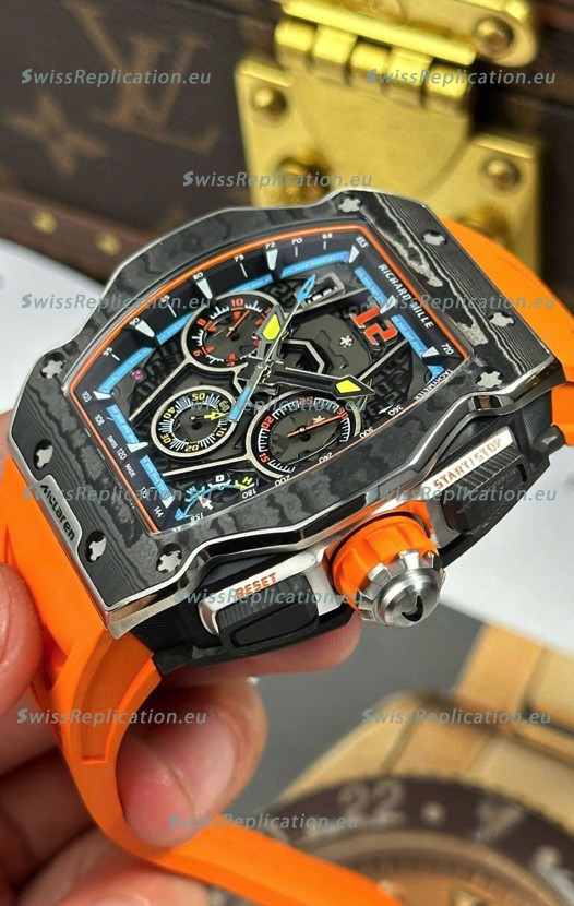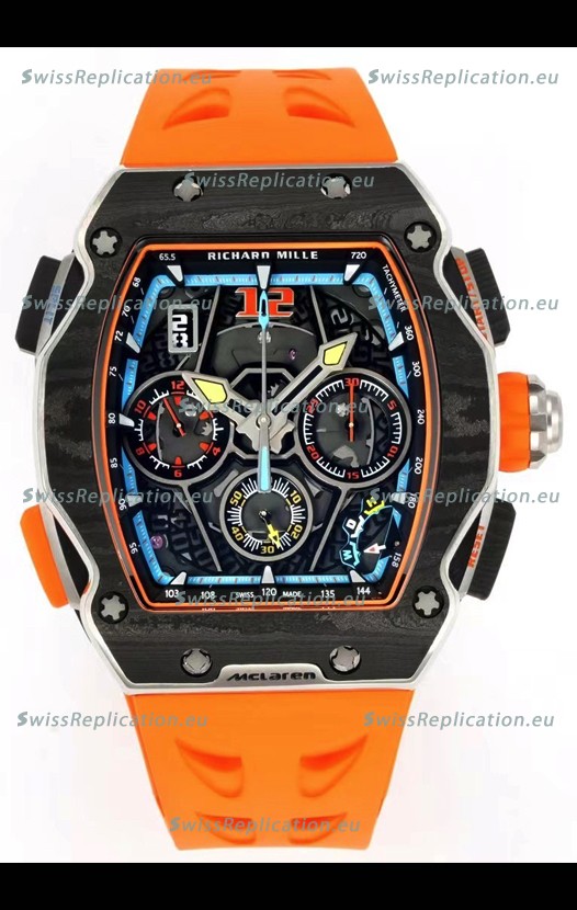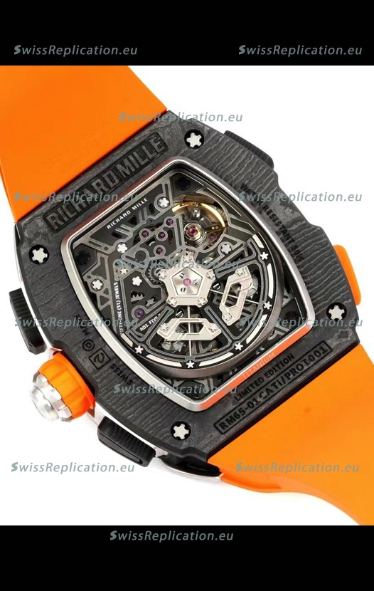 | Description | Richard Mille Super Clone RM65-01 Carbon Casing Replica Watch in Orange Strap |