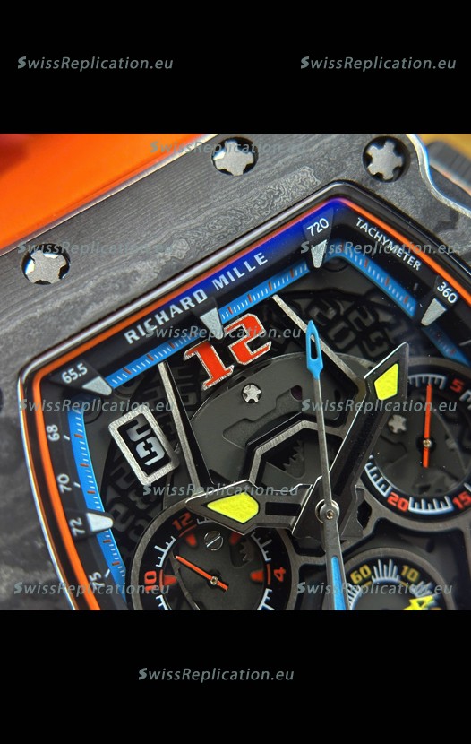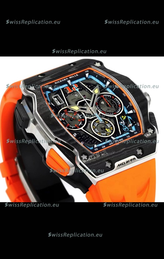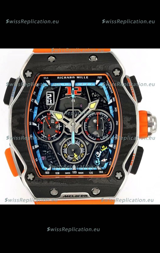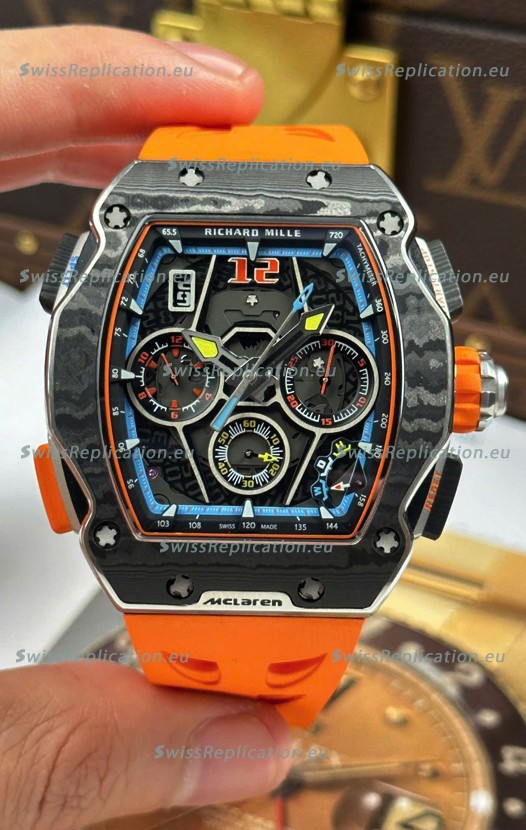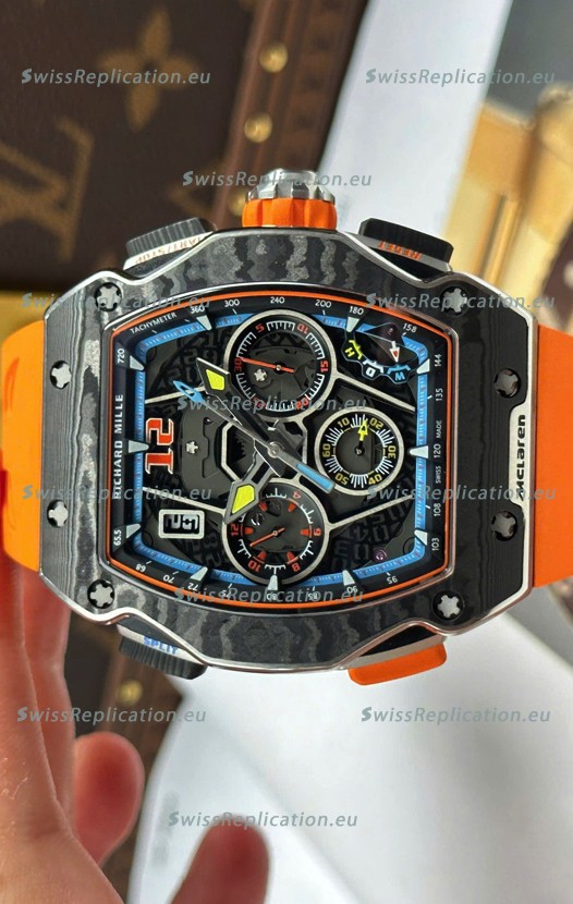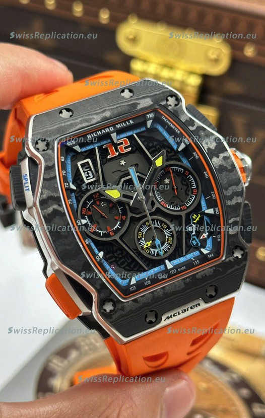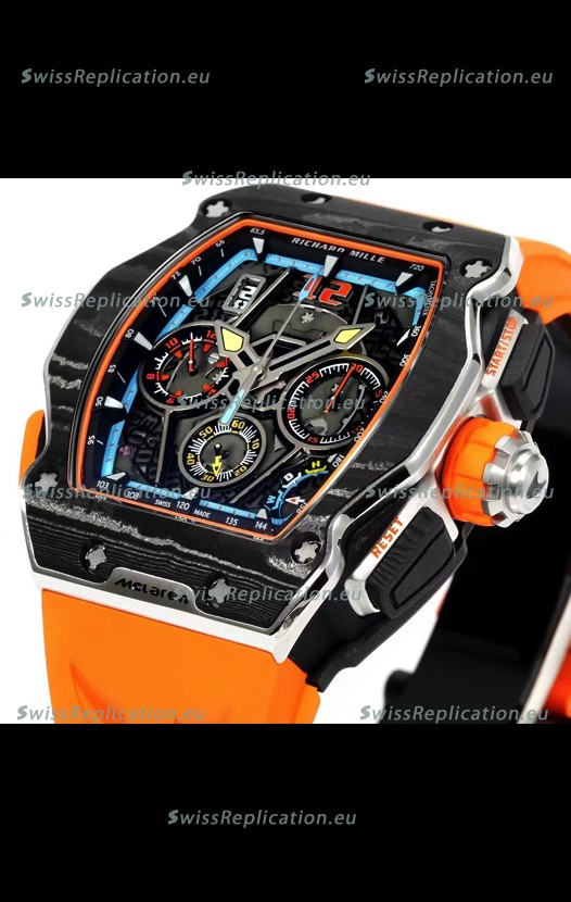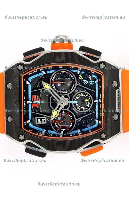 | Description | Richard Mille Super Clone RM65-01 Carbon Casing Replica Watch in Orange Strap |