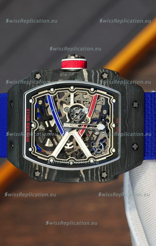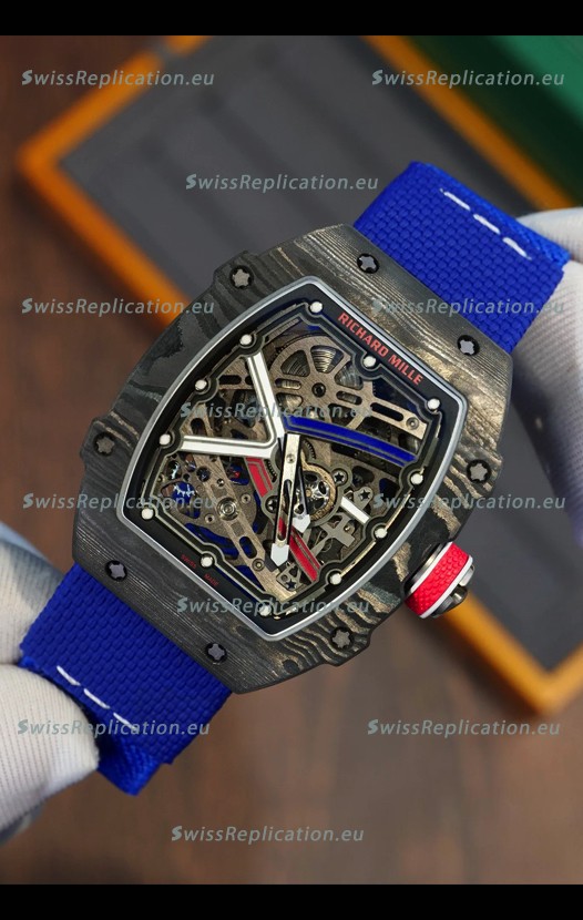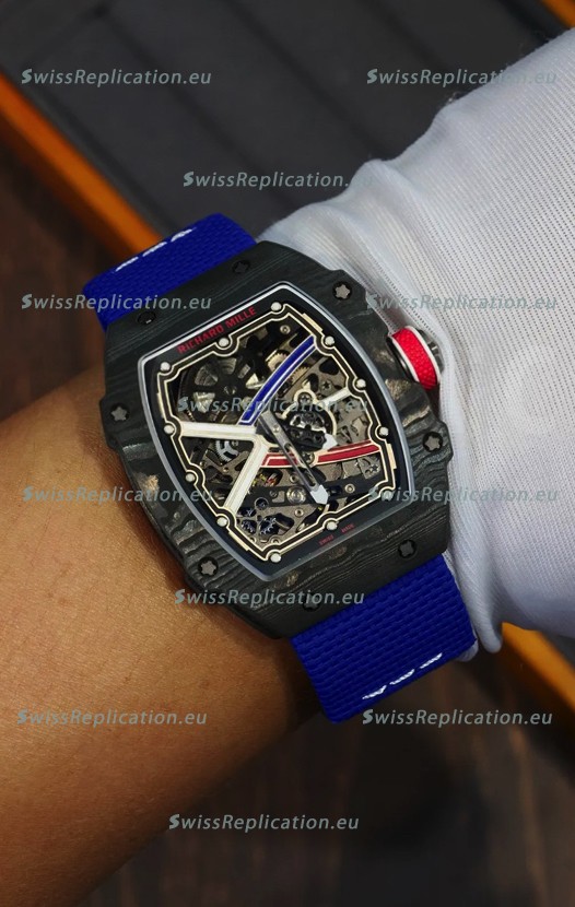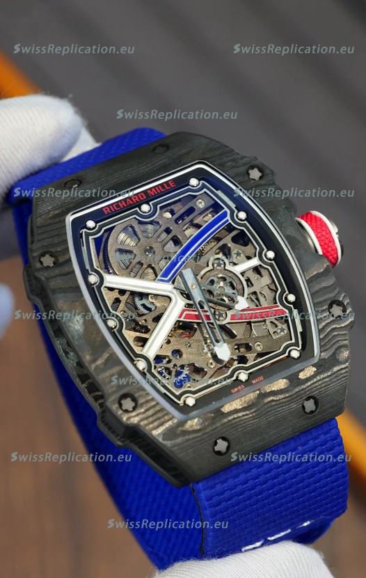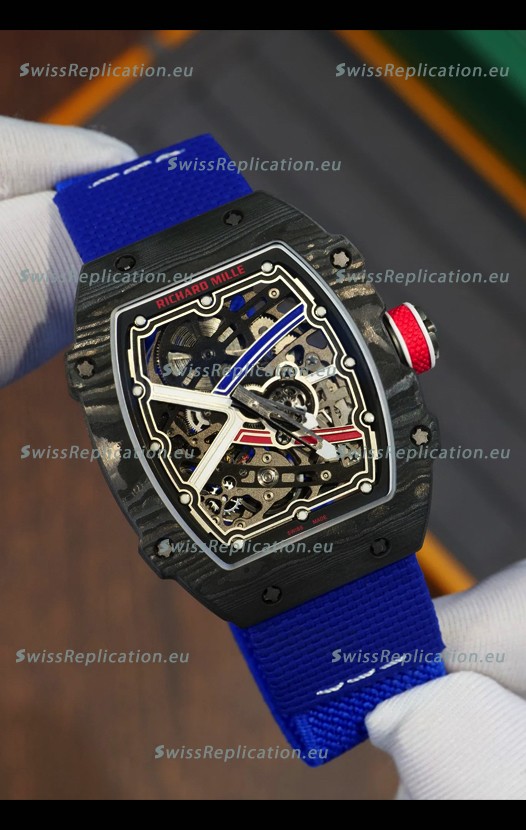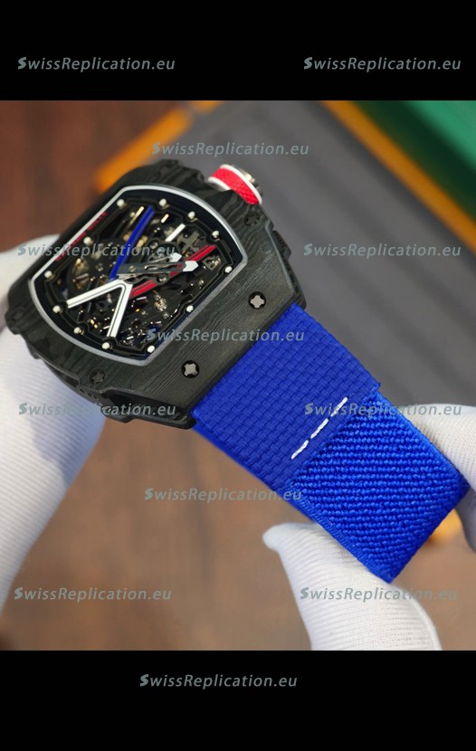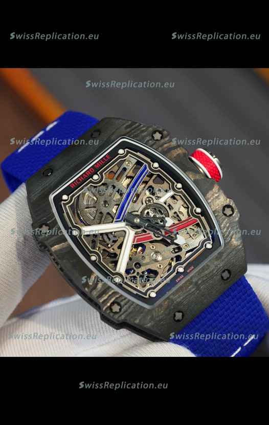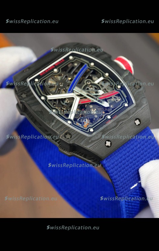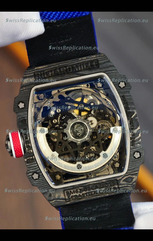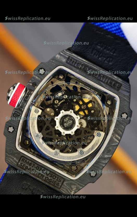 | Description | Richard Mille Super Clone RM67-02 Sebastien Ogier Black Carbon TPT 37 Grams Watch Blue Strap |