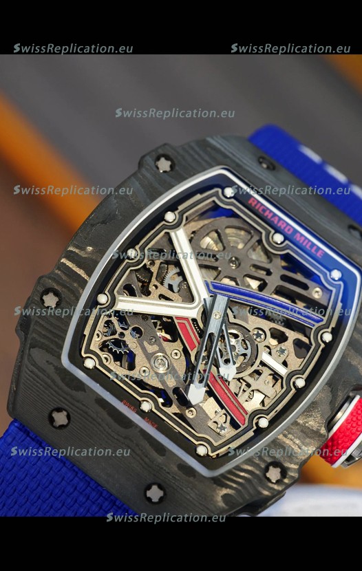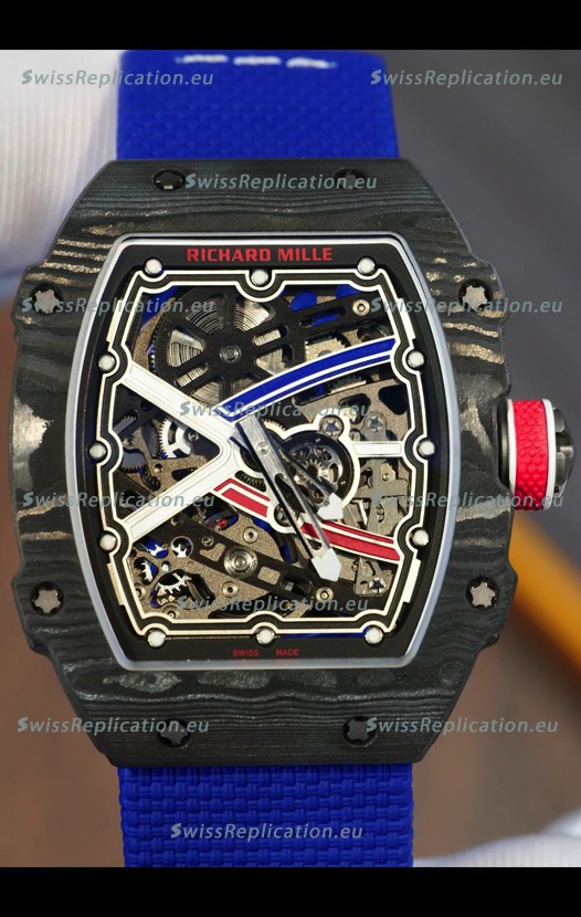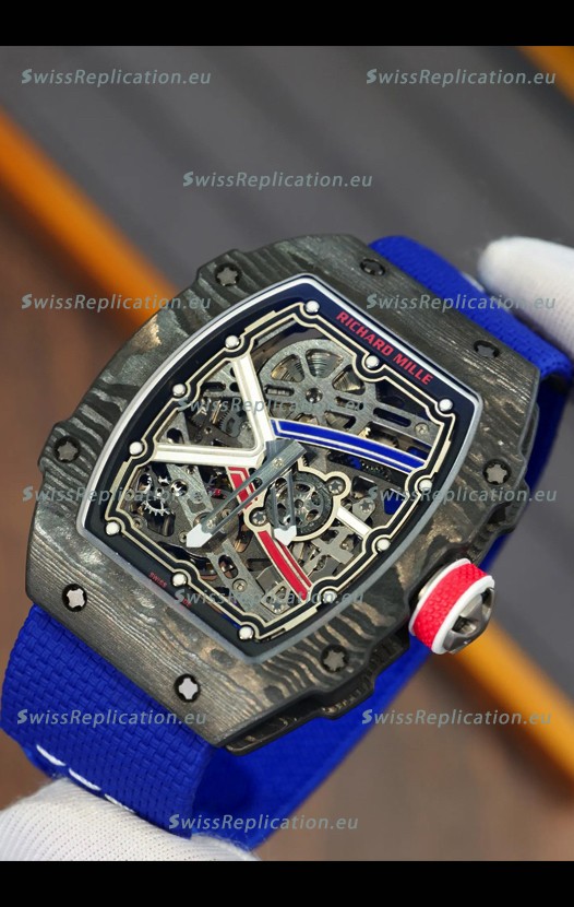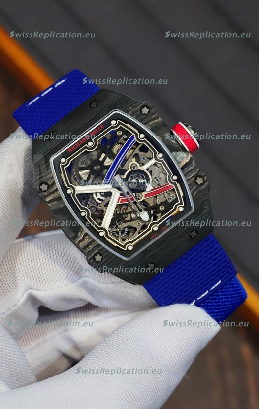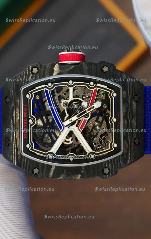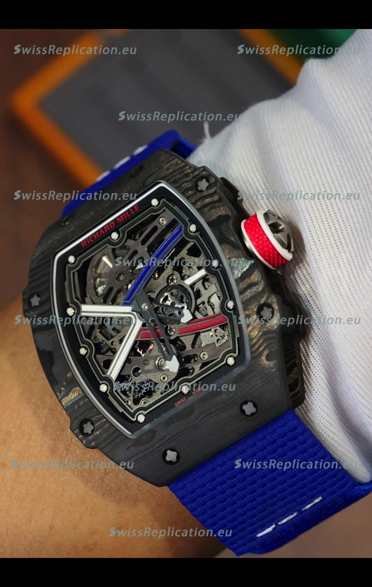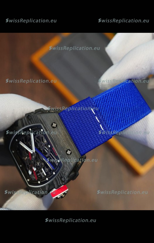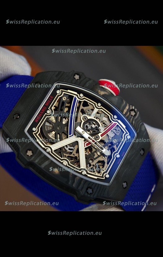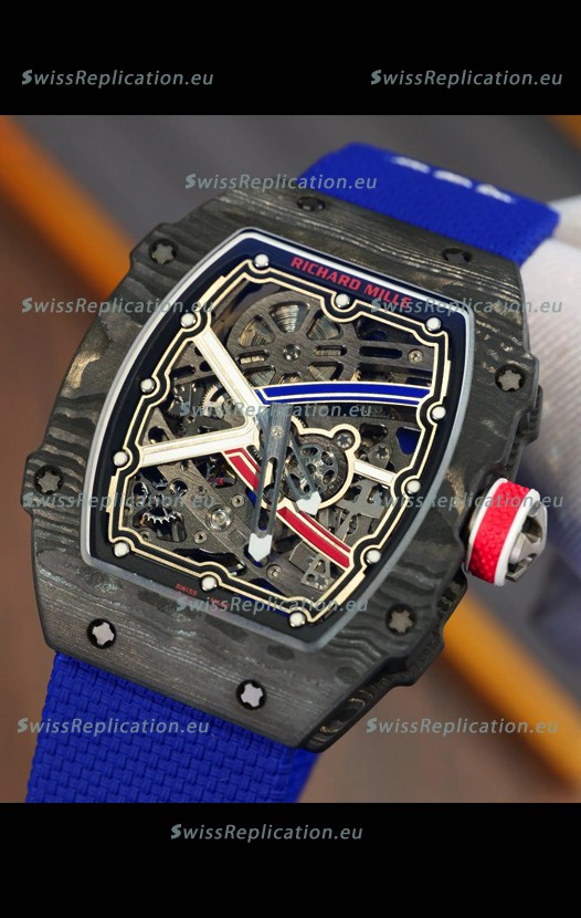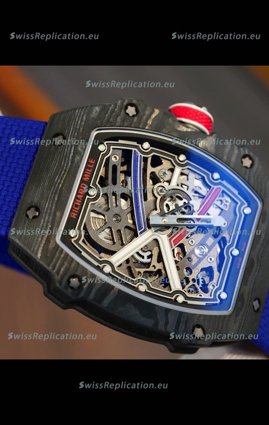 | Description | Richard Mille Super Clone RM67-02 Sebastien Ogier Black Carbon TPT 37 Grams Watch Blue Strap |