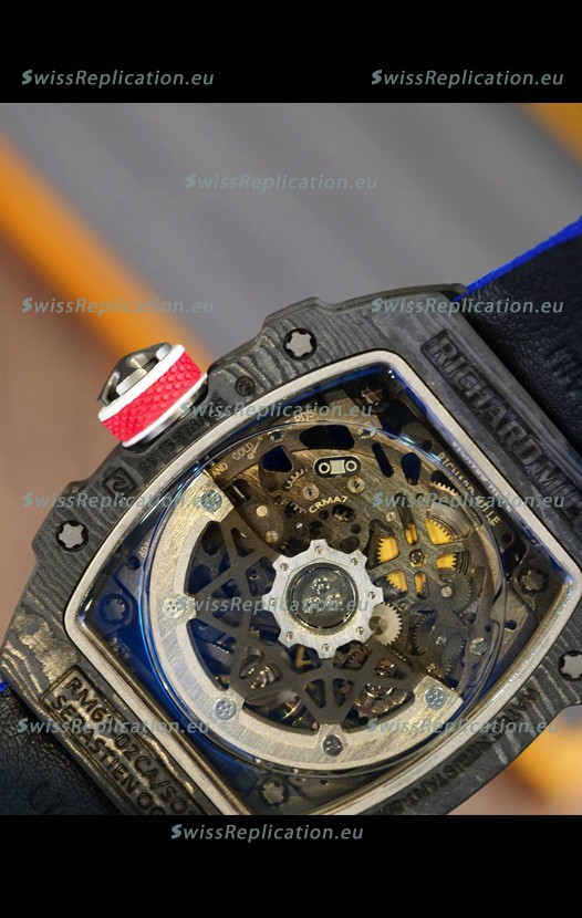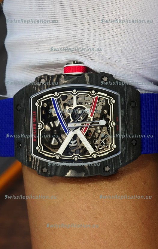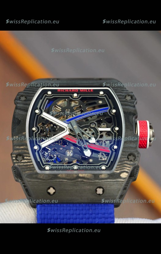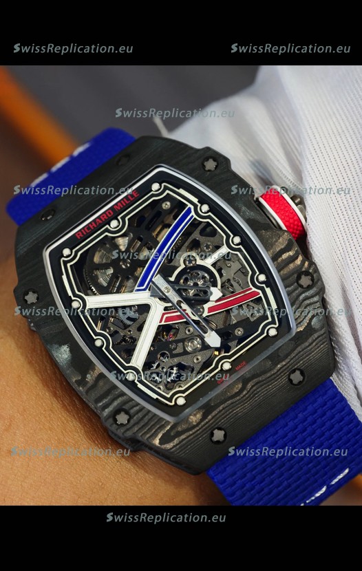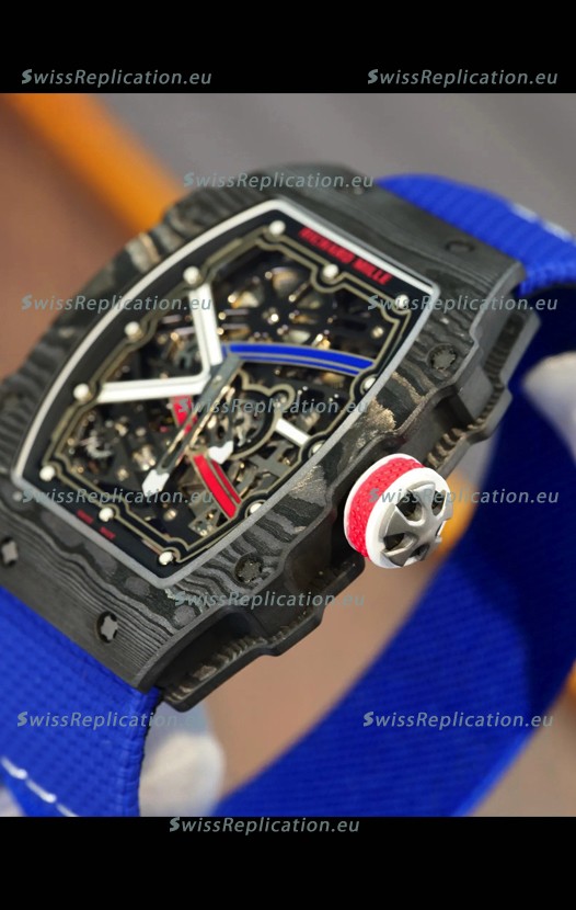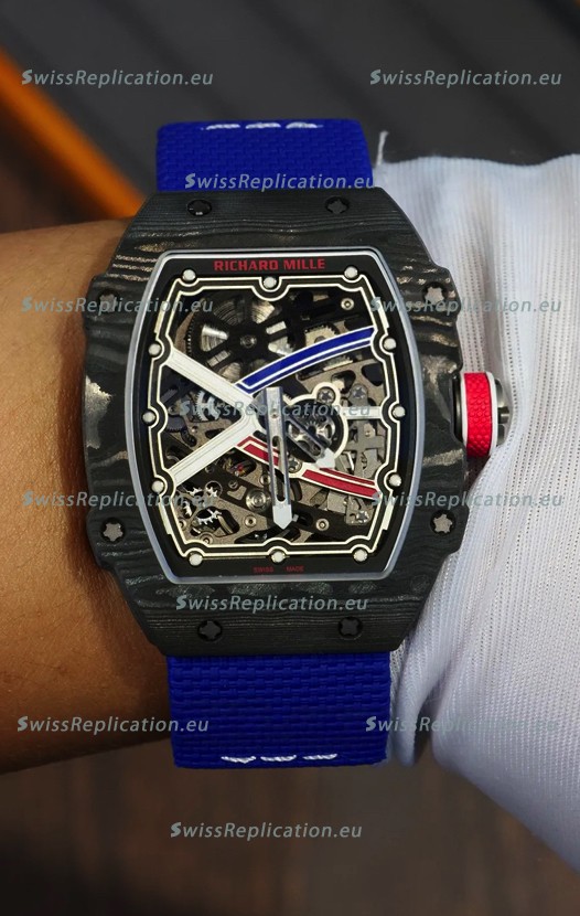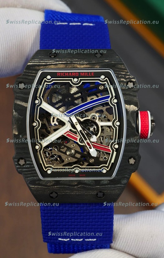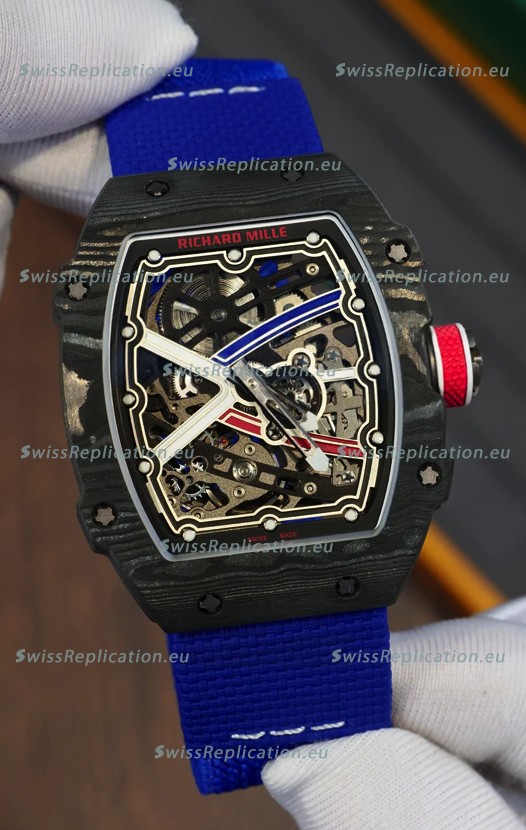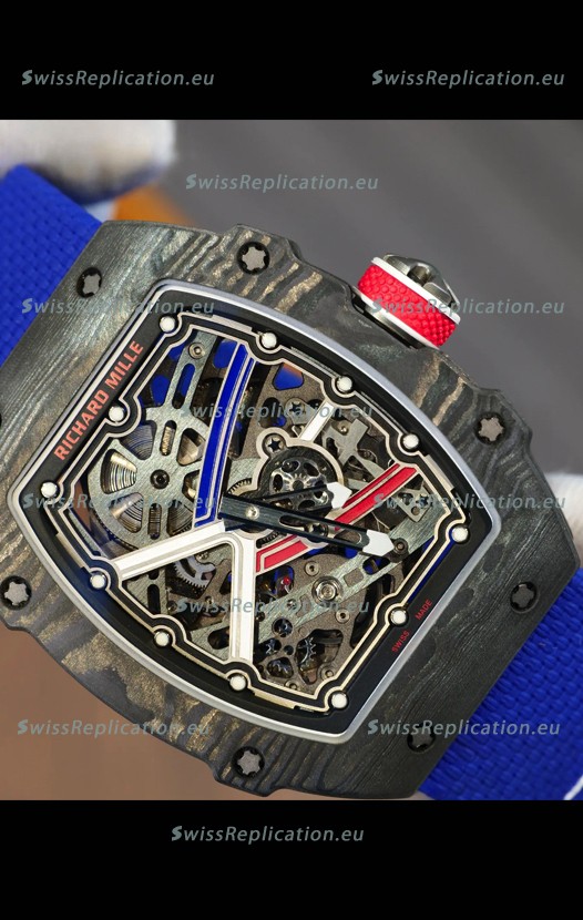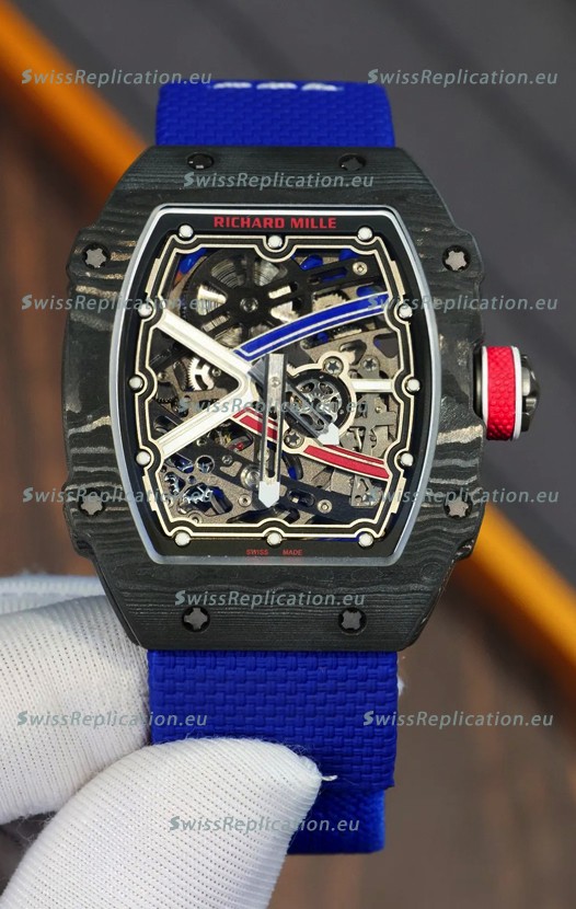 | Description | Richard Mille Super Clone RM67-02 Sebastien Ogier Black Carbon TPT 37 Grams Watch Blue Strap |