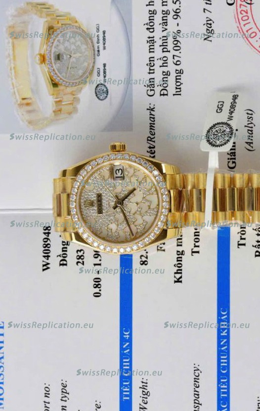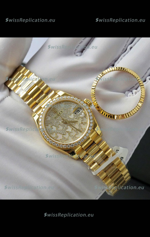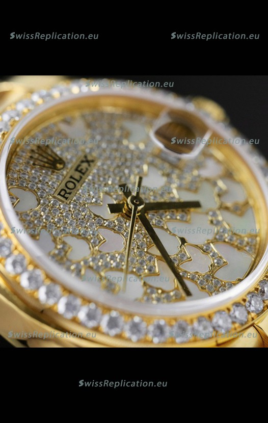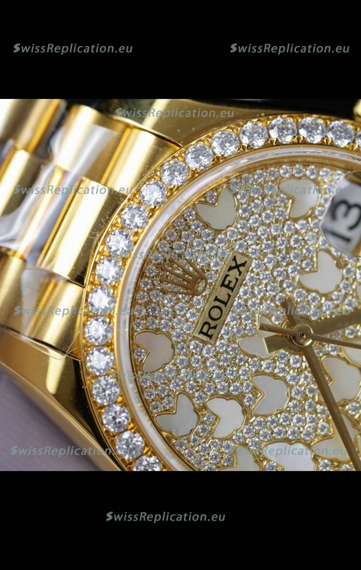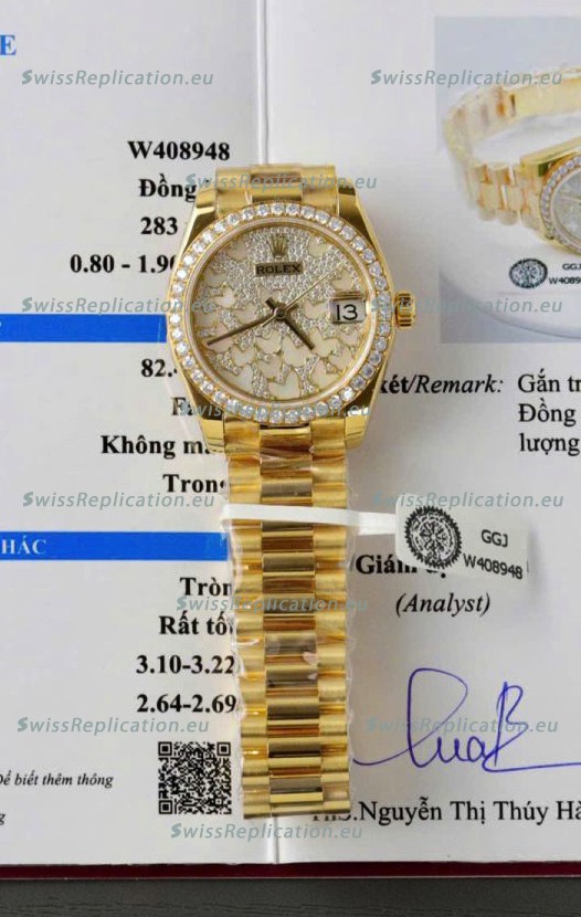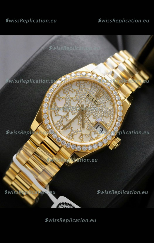 | Description | Rolex Datejust Super Clone Mossanites Butterfly Dial 31MM Yellow Gold Watch |