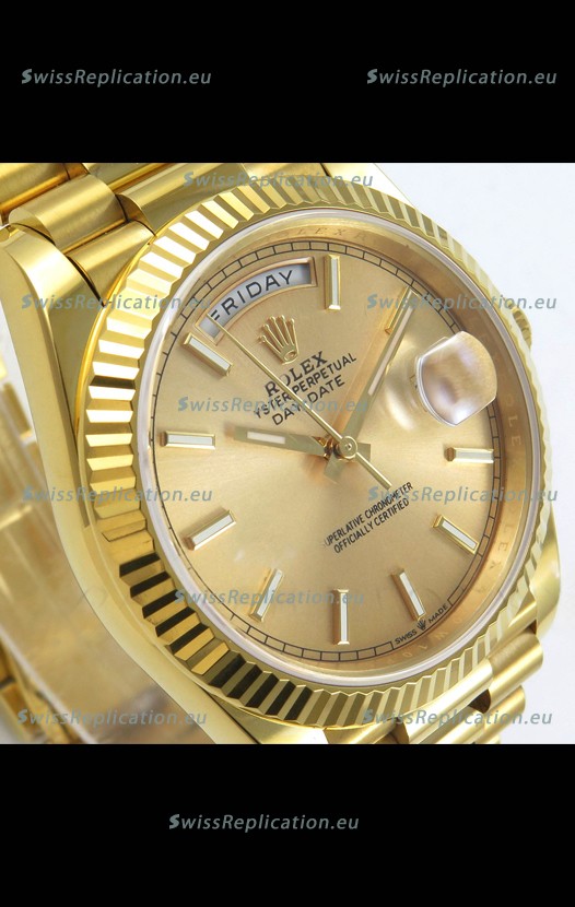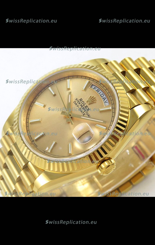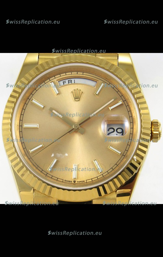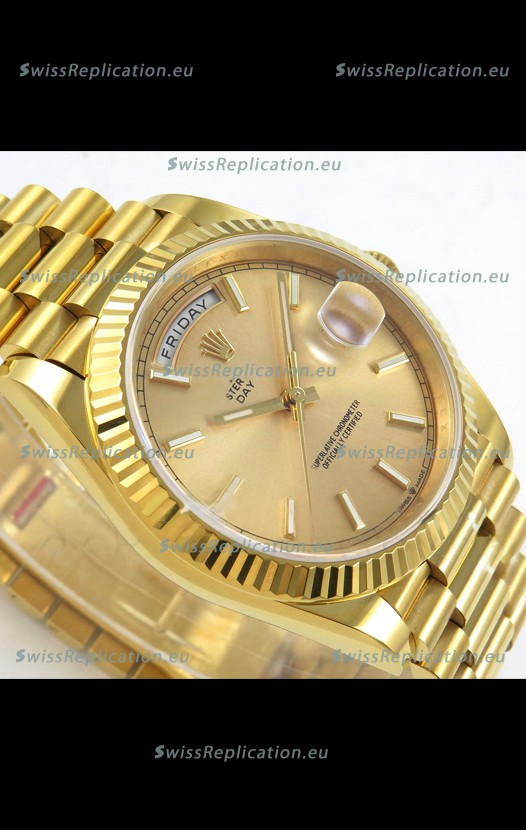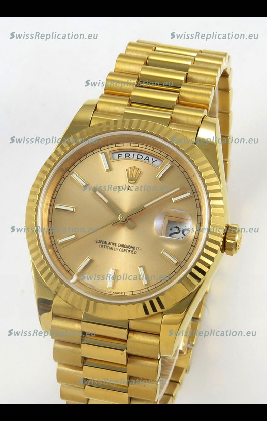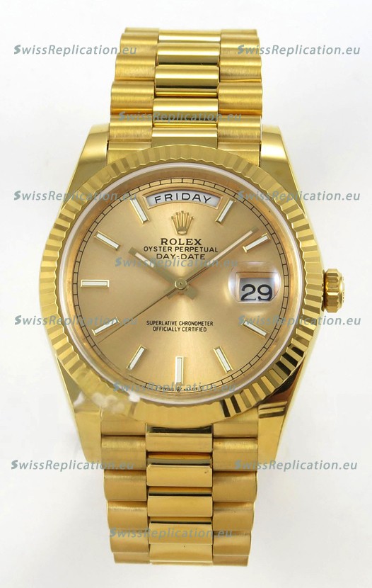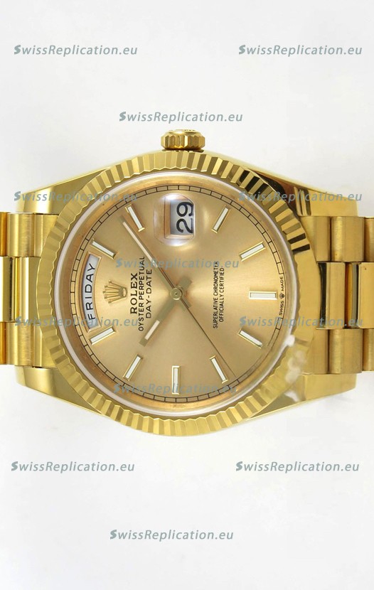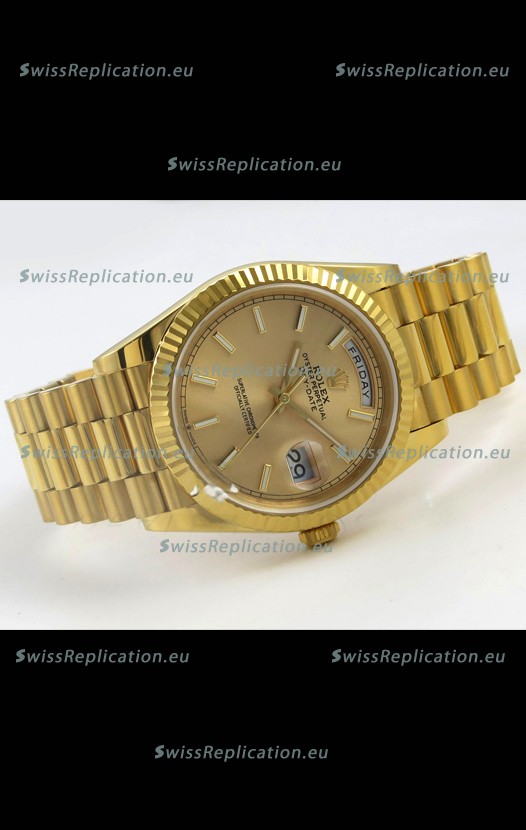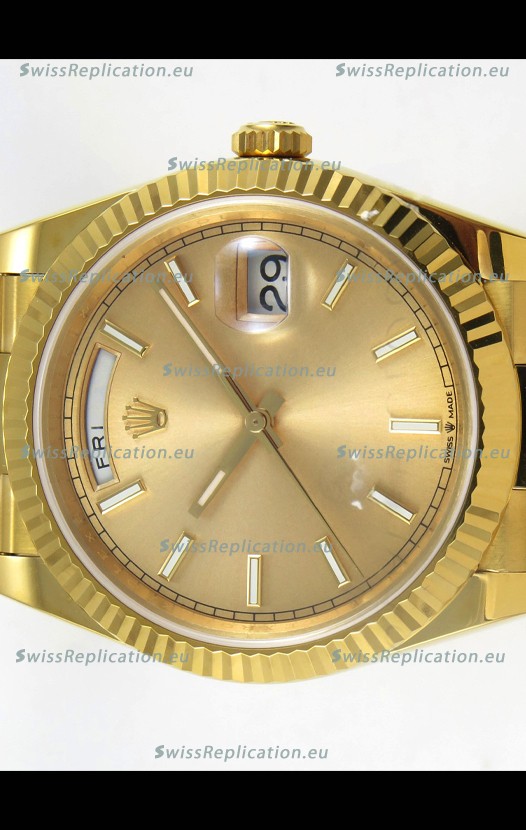 | Description | Rolex Day Date Super Clone Gold Dial 40MM 220 Grams Swiss Replica watch |