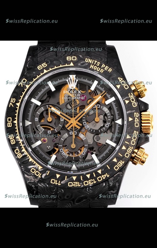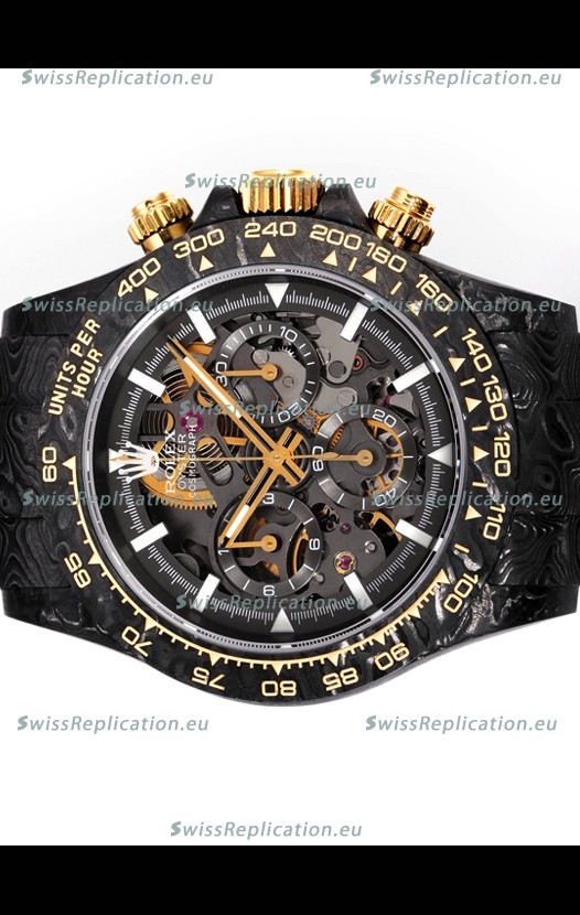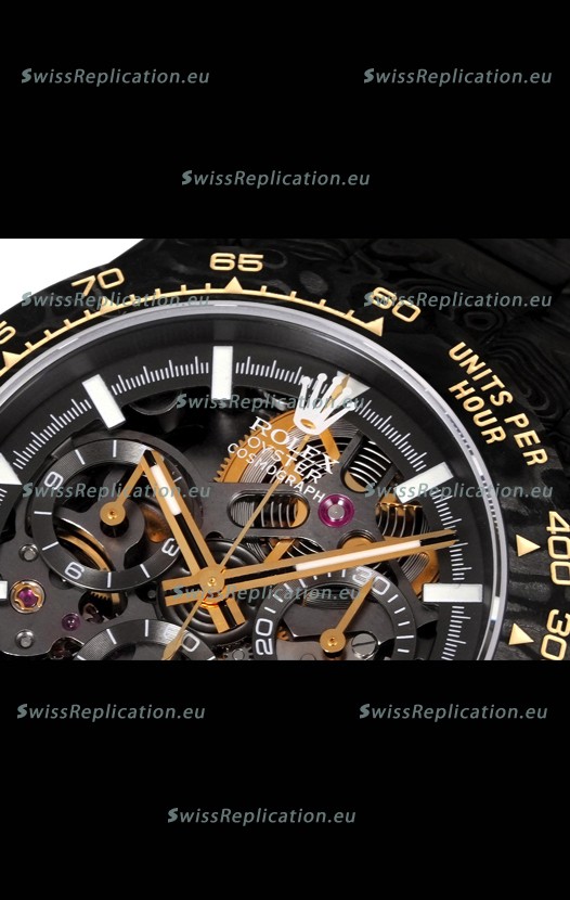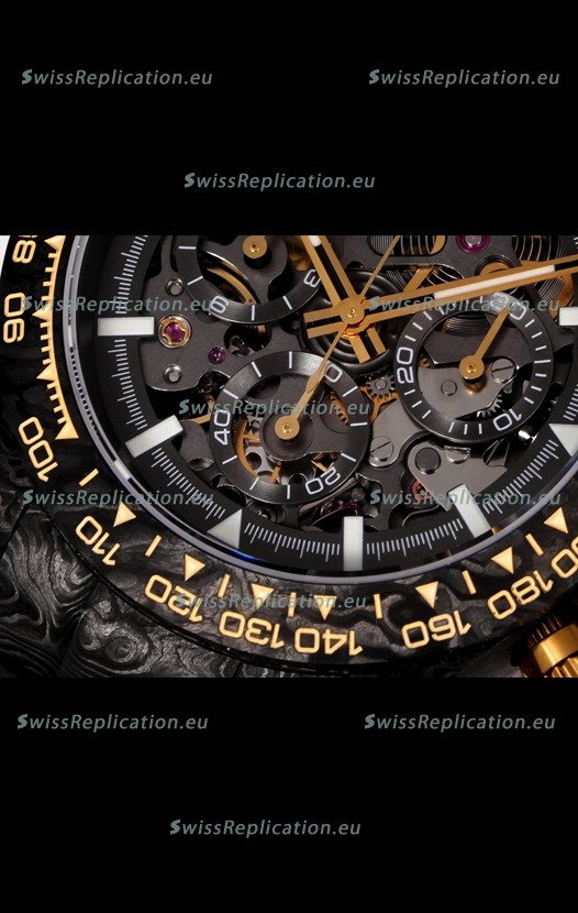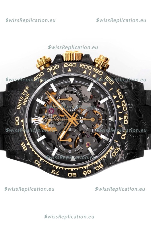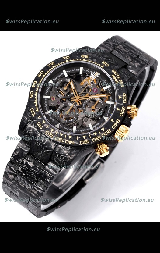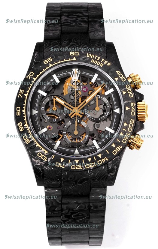 | Description | Rolex Daytona Blaken Black Carbon 1:1 Swiss Mirror Replica Skeleton Dial Cal.4130 Movement |