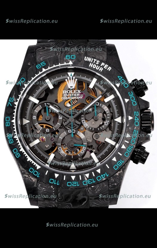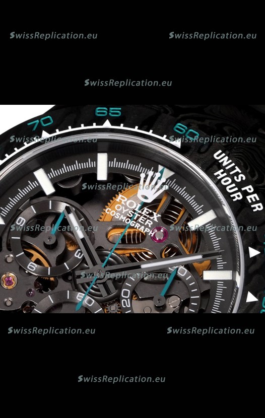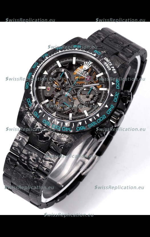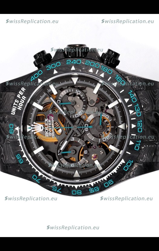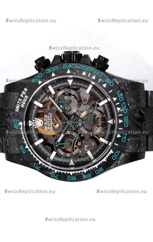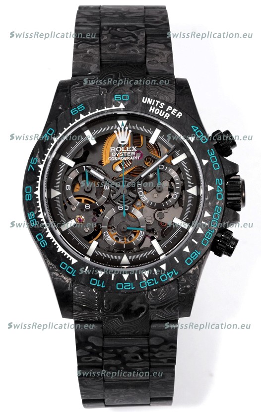 | Description | Rolex Daytona Blaken Black Carbon 1:1 Swiss Mirror Replica Skeleton Dial Cal.4130 Movement |
