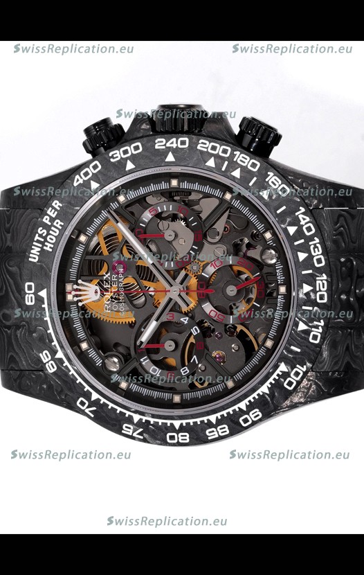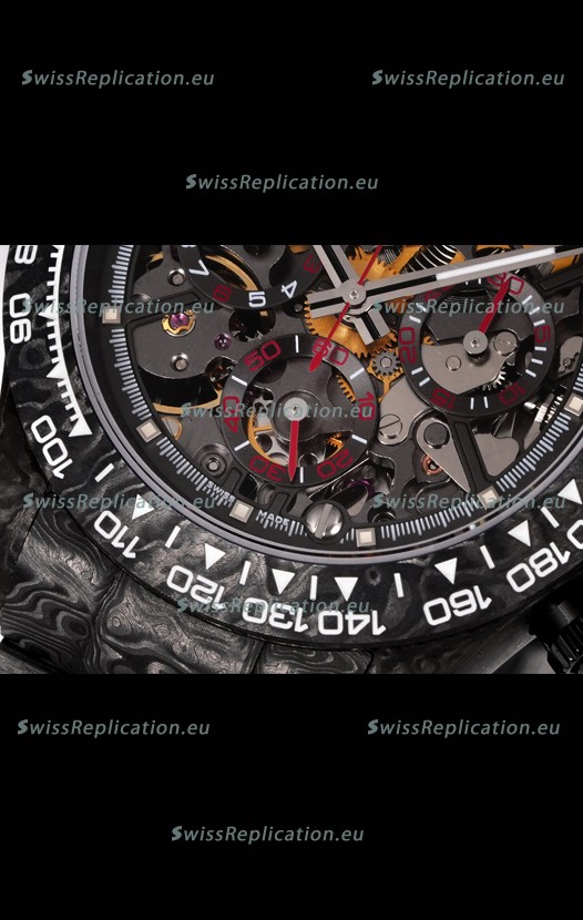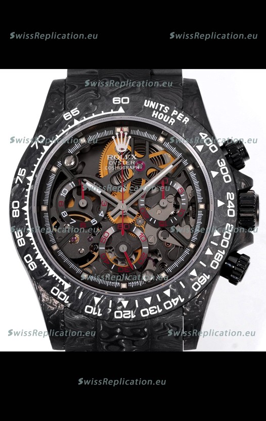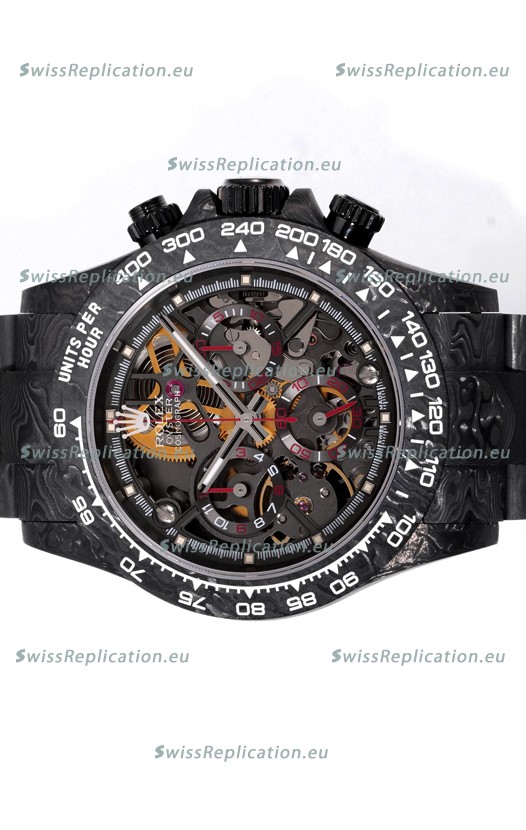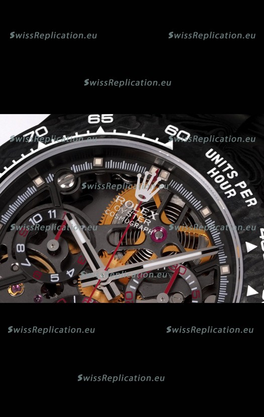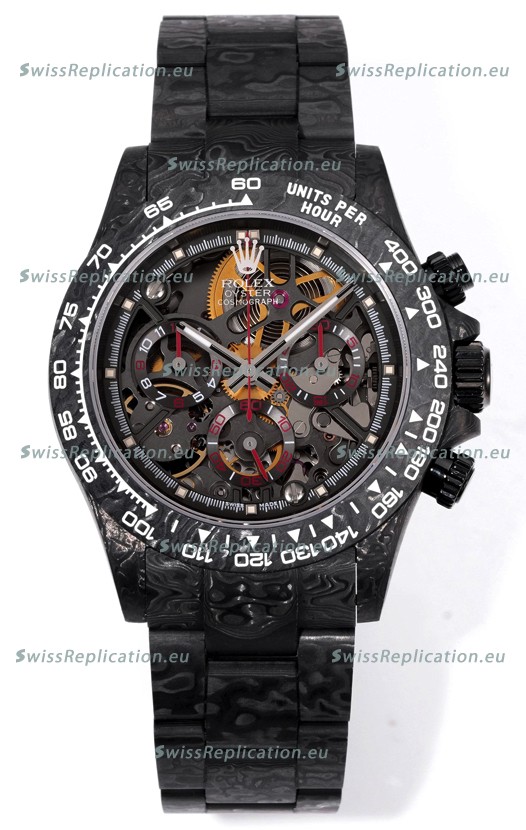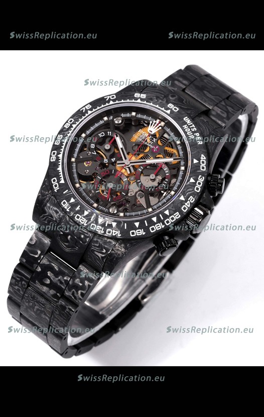 | Description | Rolex Daytona Blaken Black Carbon 1:1 Swiss Mirror Replica Skeleton Dial Cal.4130 Movement |
