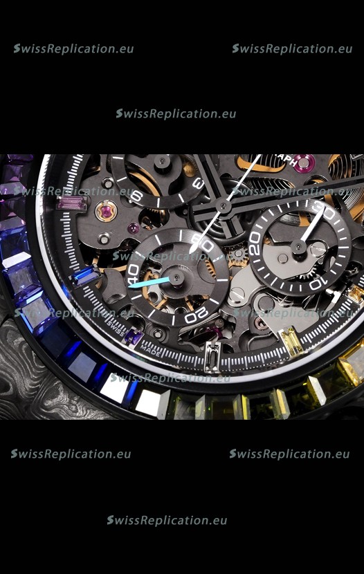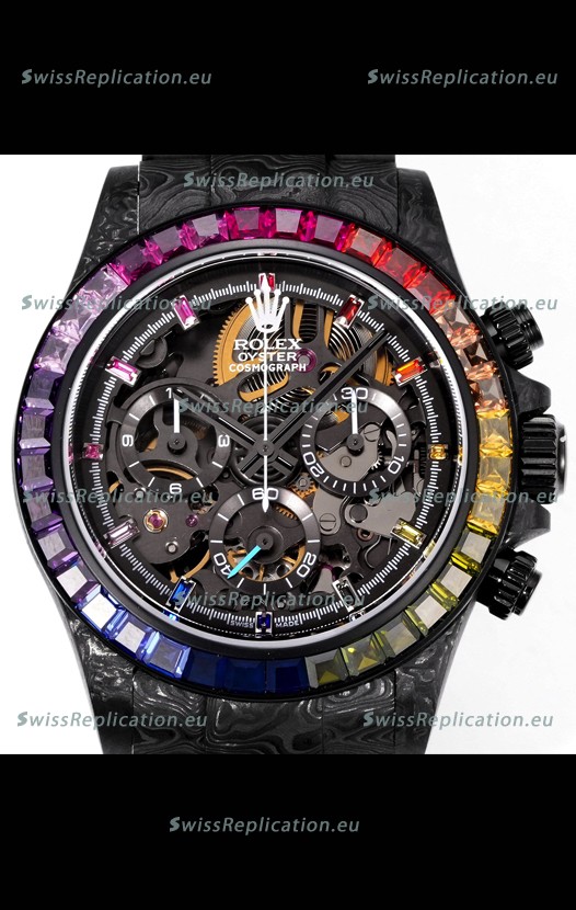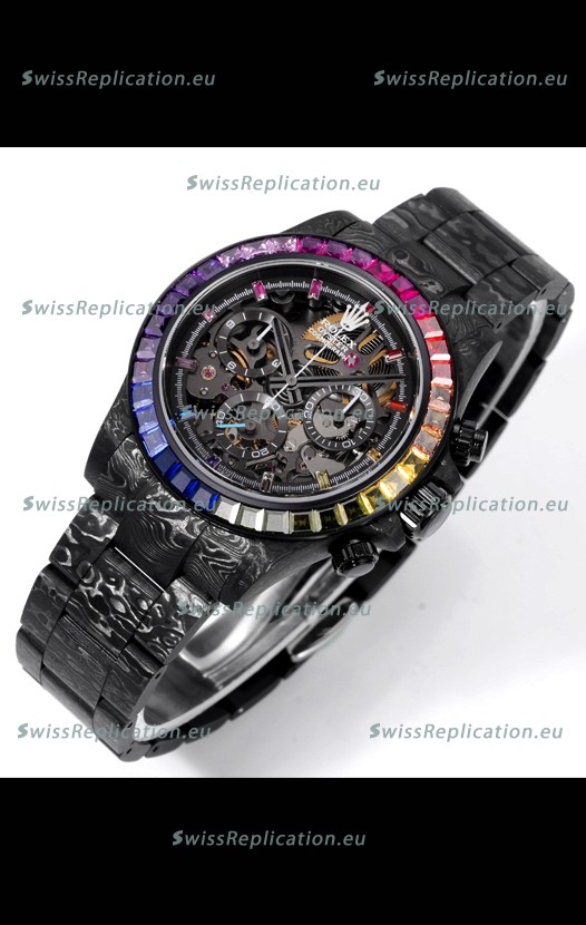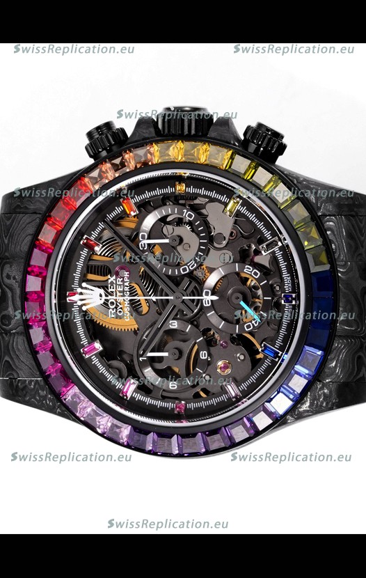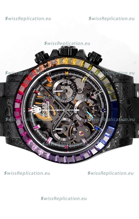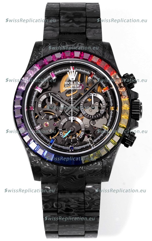 | Description | Rolex Daytona Blaken Black Carbon 1:1 Swiss Mirror Replica Skeleton Dial Cal.4130 Movement |